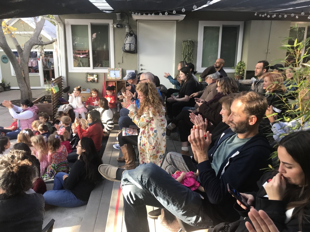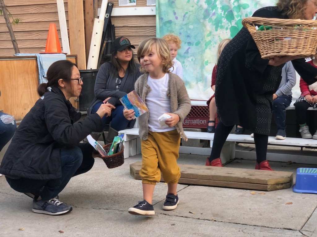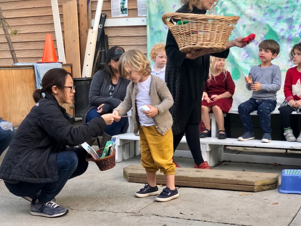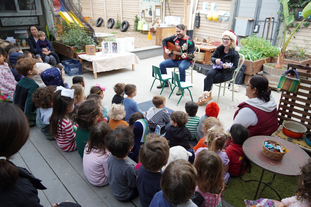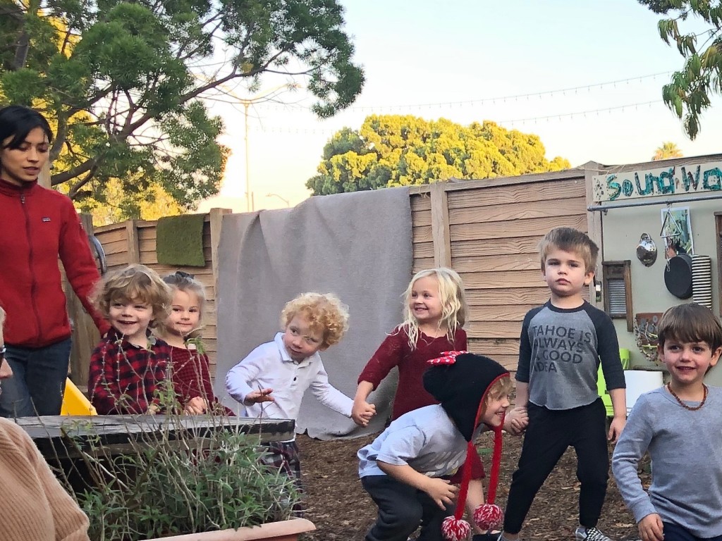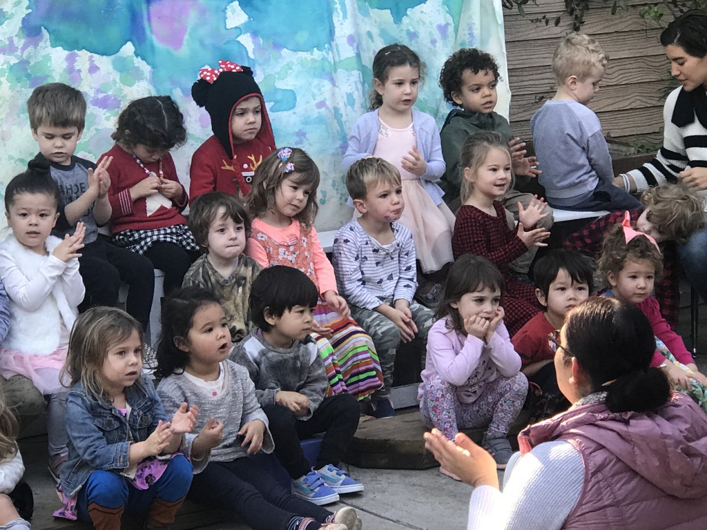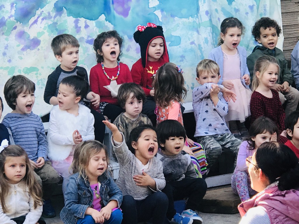 What a wonderful way to bring in the holidays and close out the year . . . The East Wing was treated to the book “Hoppy Hanukkah” by Glaser, a dreidel demonstration and game by Jaclyn and Eli and donation of dreidels and pennies to continue the play. Both the East Wing and West Wing chose their own songs, gave thoughtful gifts to their family and received sweet presents from their teachers. We got to share delicious snacks and time together. And finally, today – Gabe (Asher, WW) and Hillary (Christoph, WW) did an impromptu holiday jam session in the front yard.