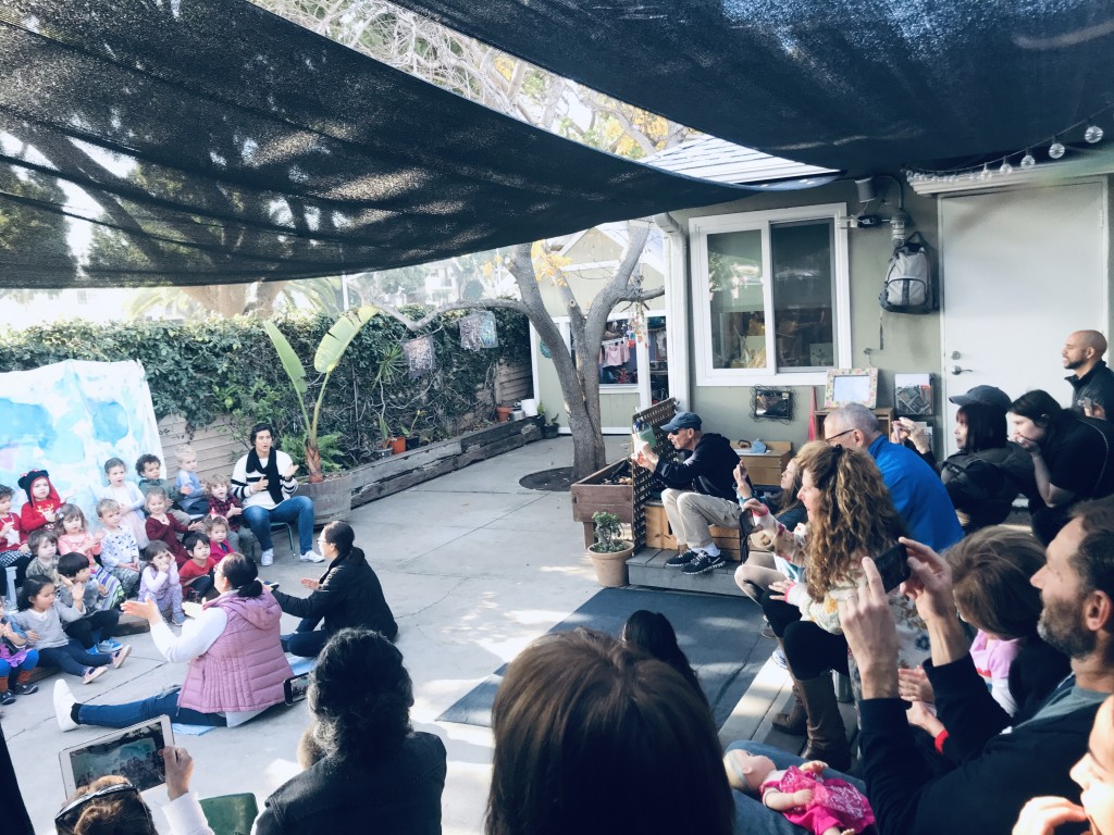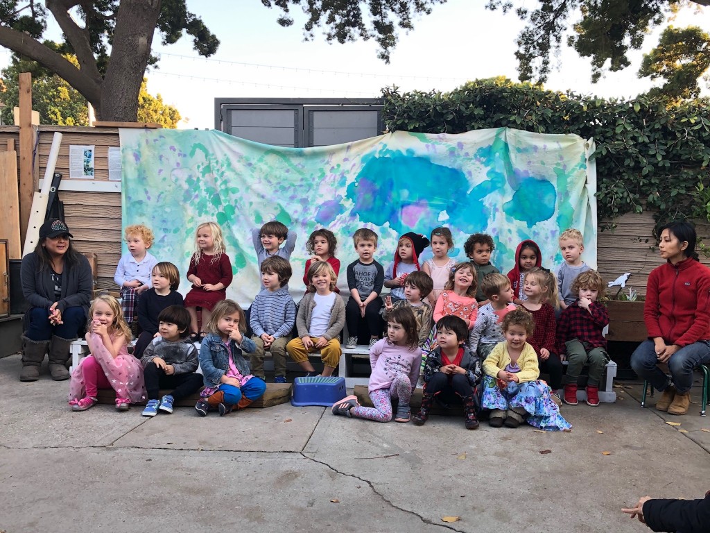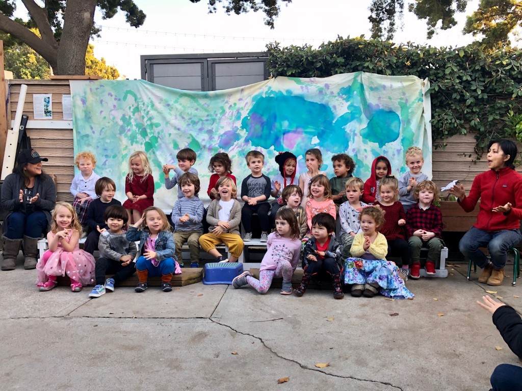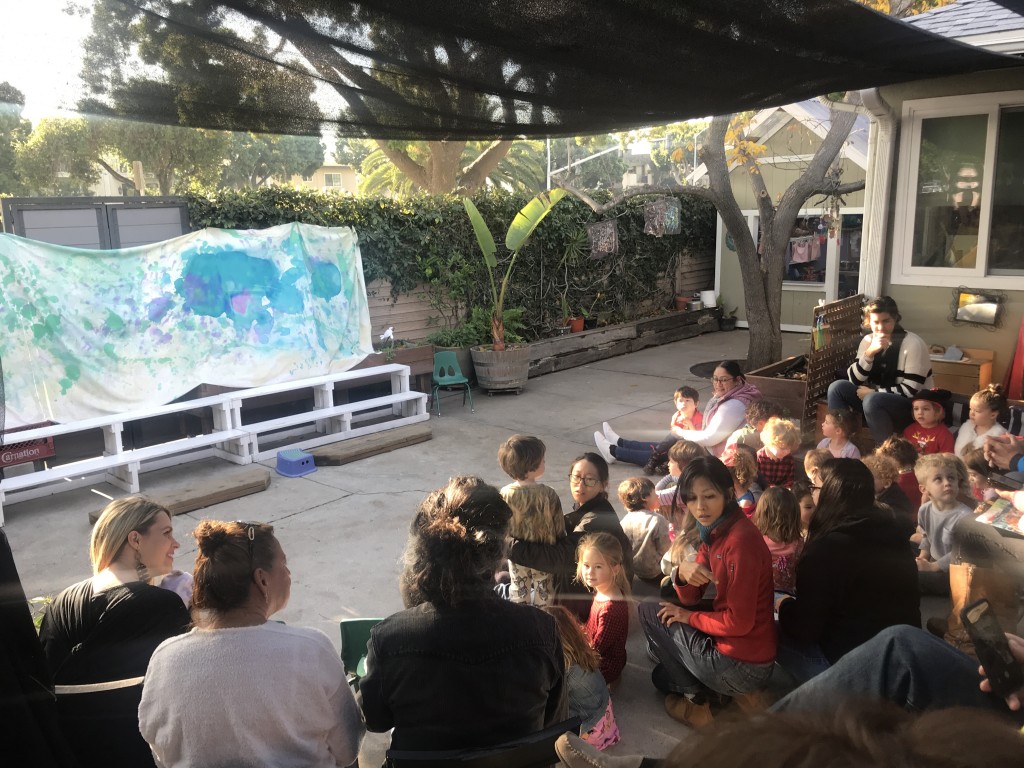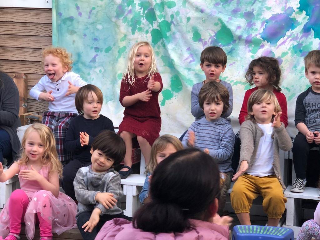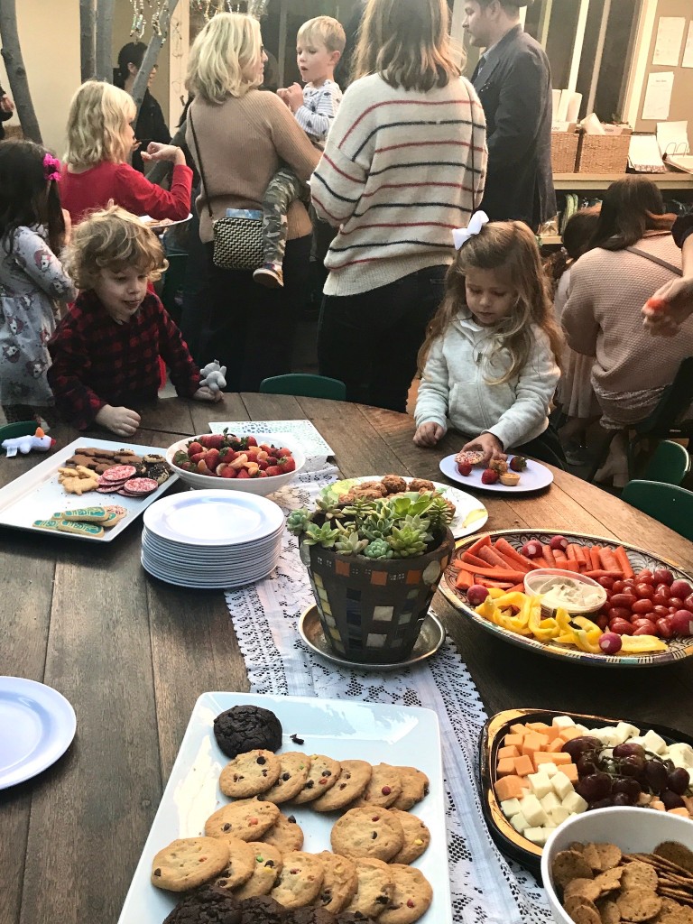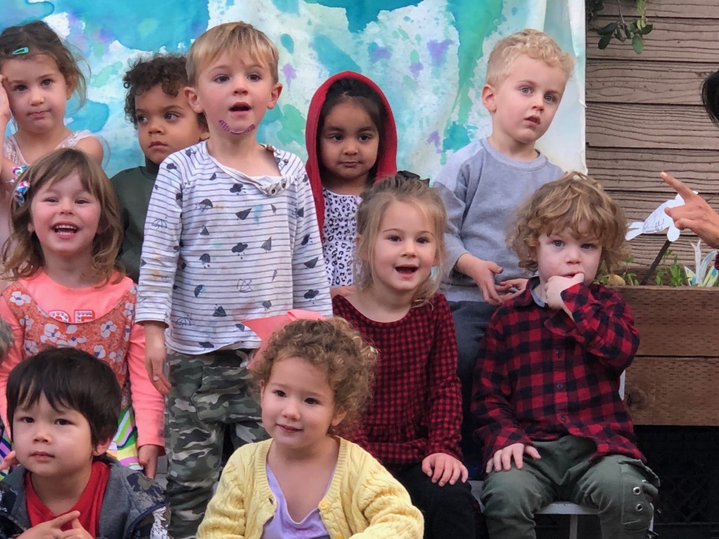 What a wonderful way to bring in the holidays and close out the year . . . The East Wing was treated to the book “Hoppy Hanukkah” by Glaser, a dreidel demonstration and game by Jaclyn and Eli and donation of dreidels and pennies to continue the play. Both the East Wing and West Wing chose their own songs, gave thoughtful gifts to their family and received sweet presents from their teachers. We got to share delicious snacks and time together. And finally, today – Gabe (Asher, WW) and Hillary (Christoph, WW) did an impromptu holiday jam session in the front yard.