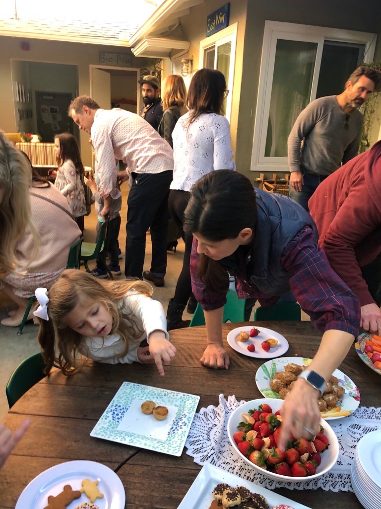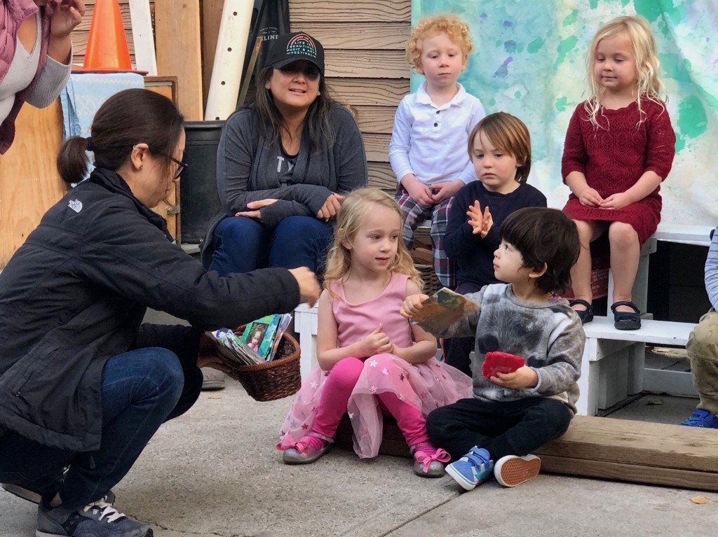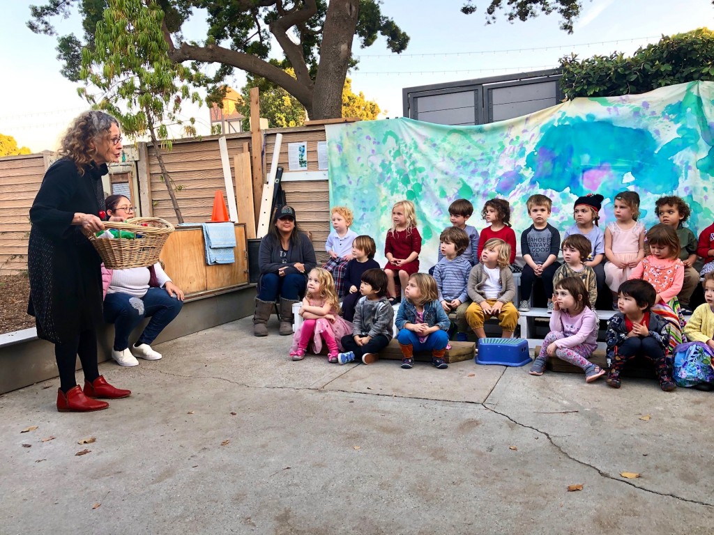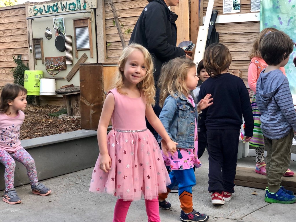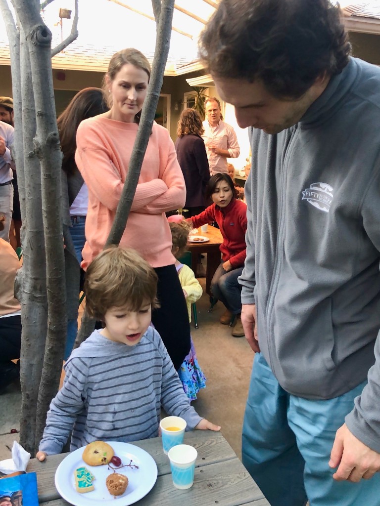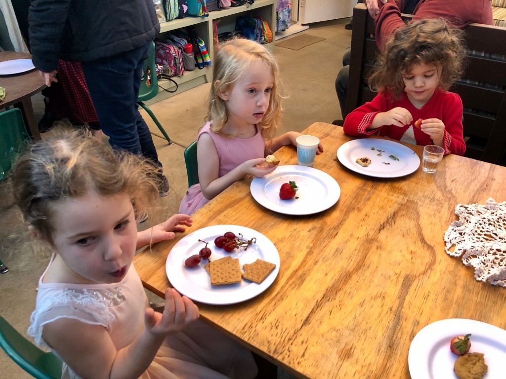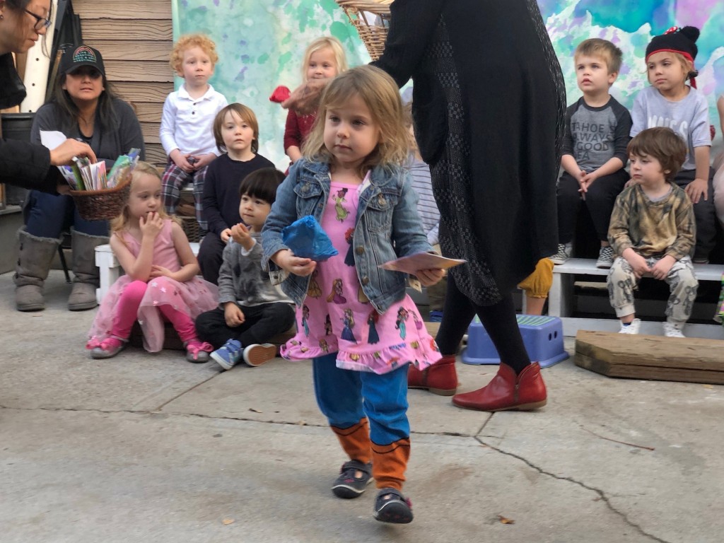 What a wonderful way to bring in the holidays and close out the year . . . The East Wing was treated to the book “Hoppy Hanukkah” by Glaser, a dreidel demonstration and game by Jaclyn and Eli and donation of dreidels and pennies to continue the play. Both the East Wing and West Wing chose their own songs, gave thoughtful gifts to their family and received sweet presents from their teachers. We got to share delicious snacks and time together. And finally, today – Gabe (Asher, WW) and Hillary (Christoph, WW) did an impromptu holiday jam session in the front yard.