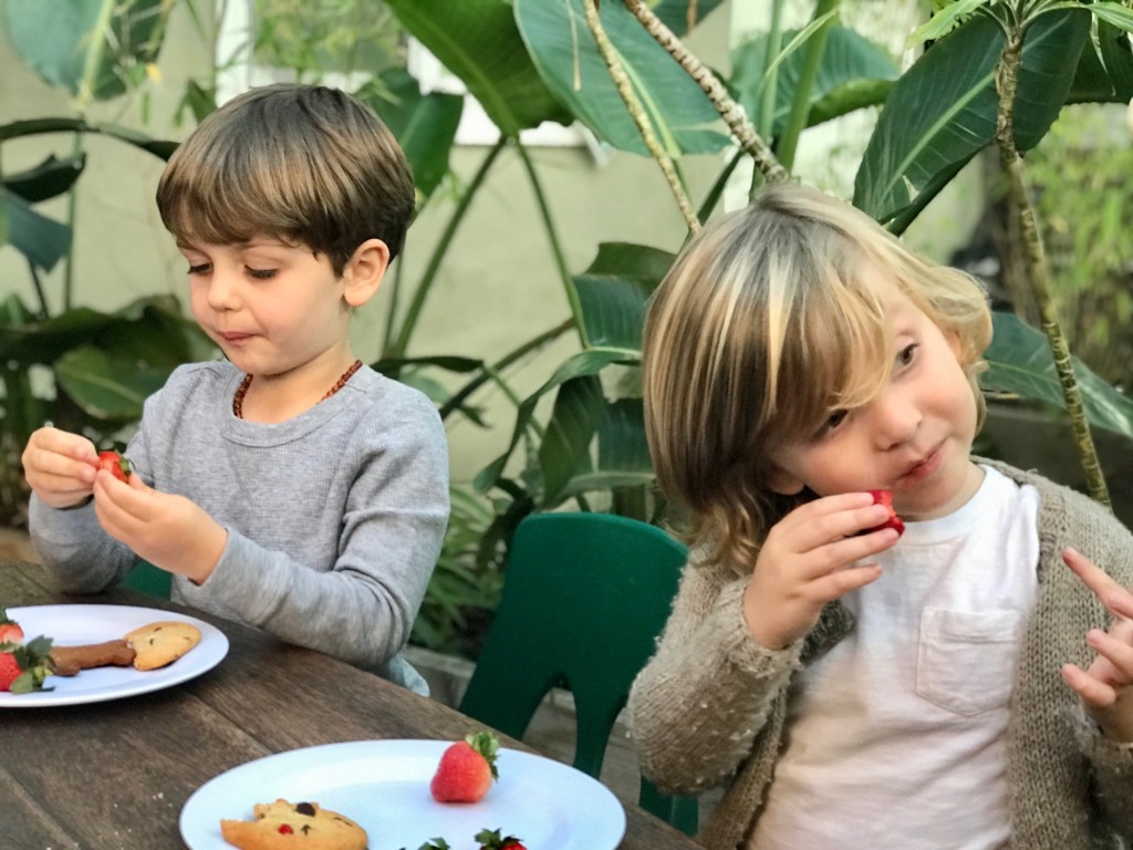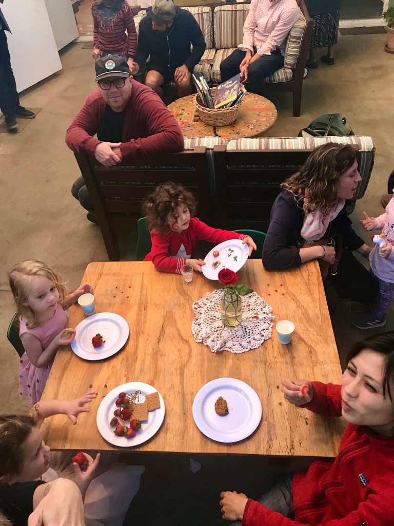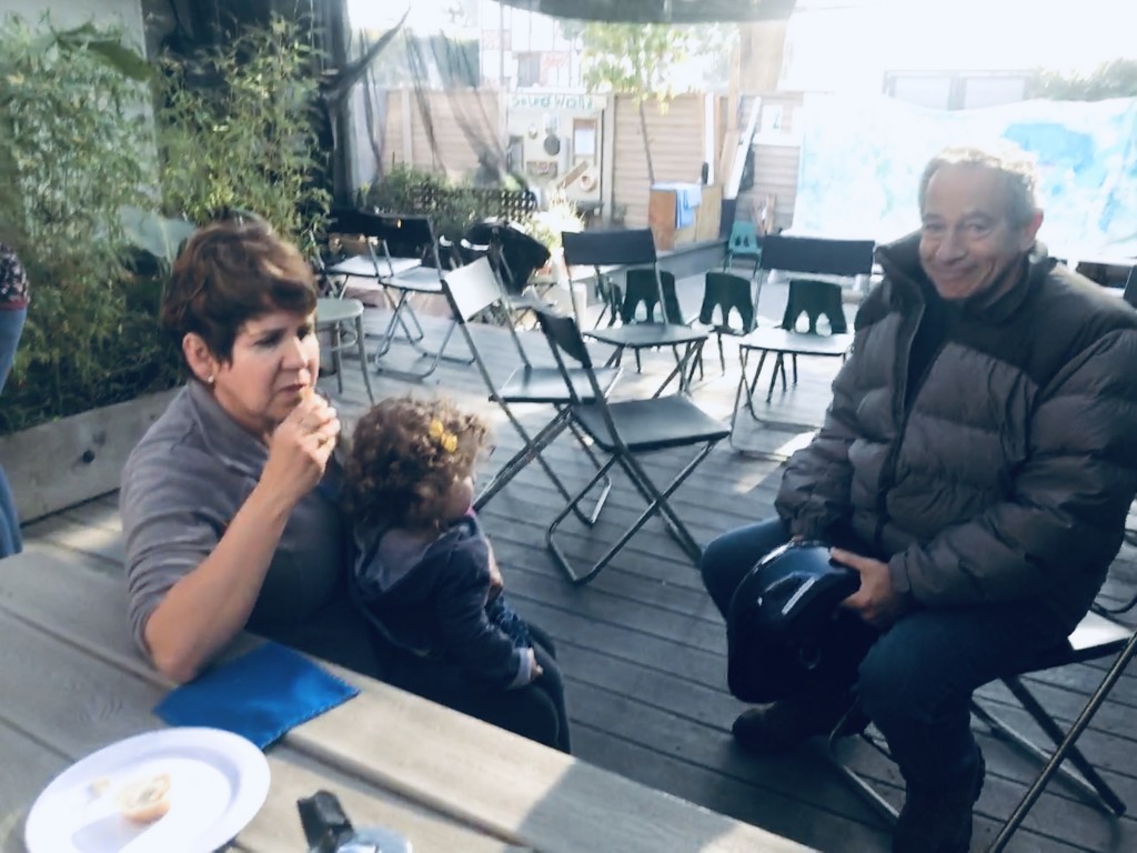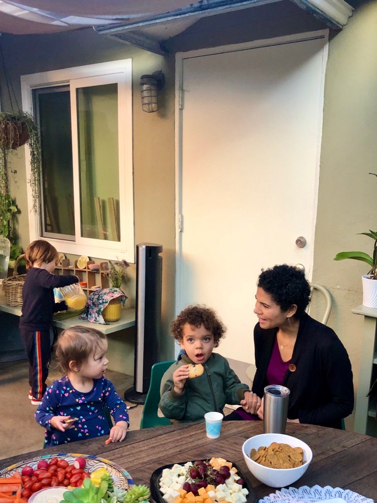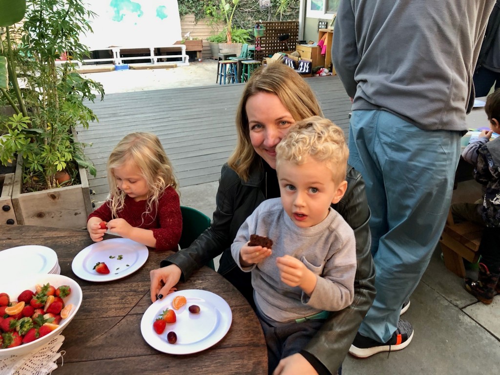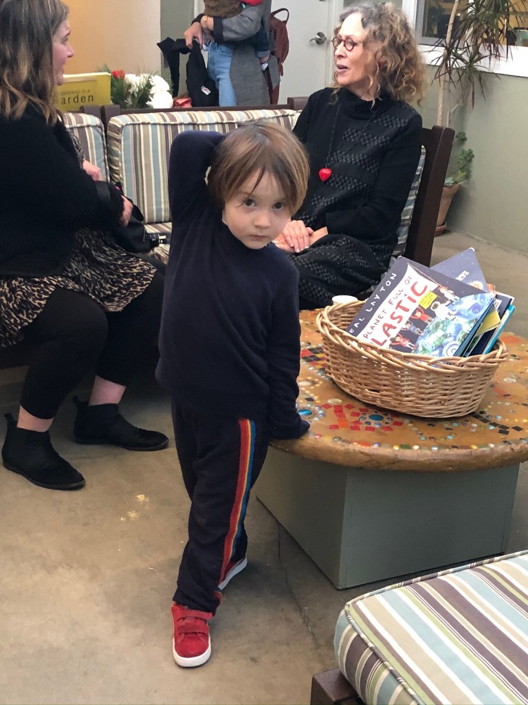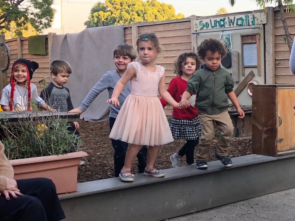 What a wonderful way to bring in the holidays and close out the year . . . The East Wing was treated to the book “Hoppy Hanukkah” by Glaser, a dreidel demonstration and game by Jaclyn and Eli and donation of dreidels and pennies to continue the play. Both the East Wing and West Wing chose their own songs, gave thoughtful gifts to their family and received sweet presents from their teachers. We got to share delicious snacks and time together. And finally, today – Gabe (Asher, WW) and Hillary (Christoph, WW) did an impromptu holiday jam session in the front yard.