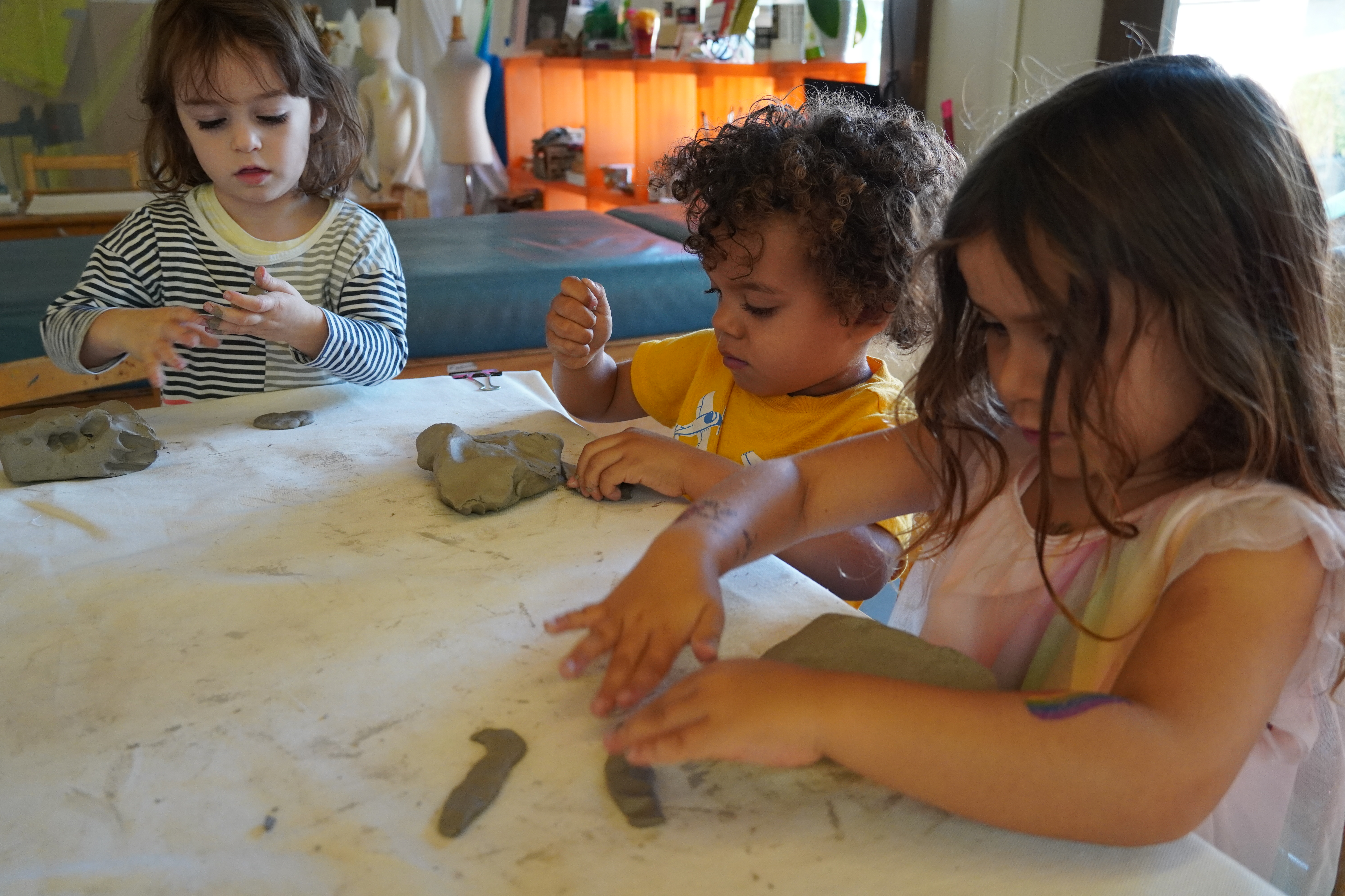 The children were able to solve some of the challenges of upright figures by making them small or wide or sitting down. As their skills with clay develop, and their familiarity with tools increases, I expect that we will see even more sophisticated figures in the future. – Amy
