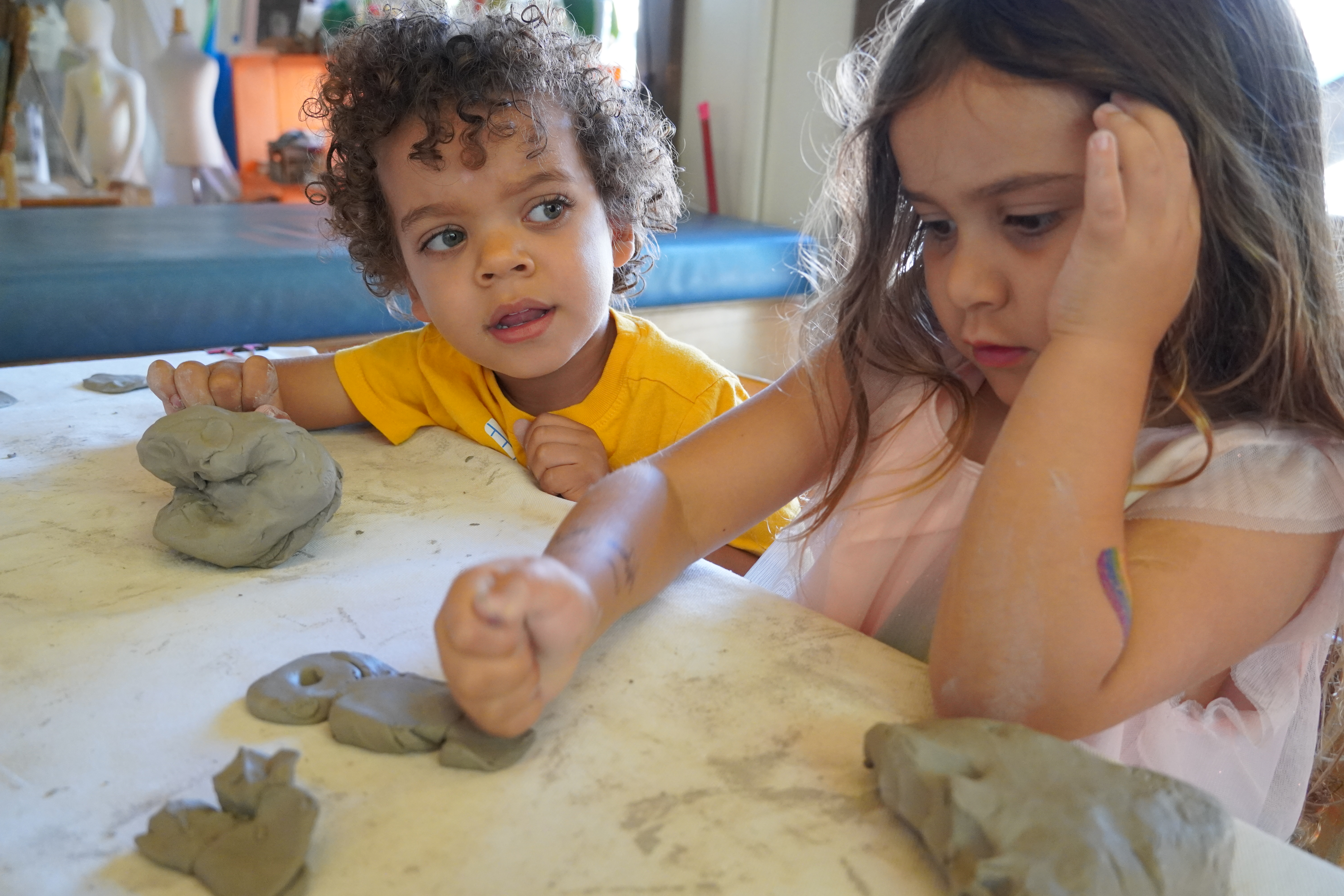 The children began to individually shape the clay.