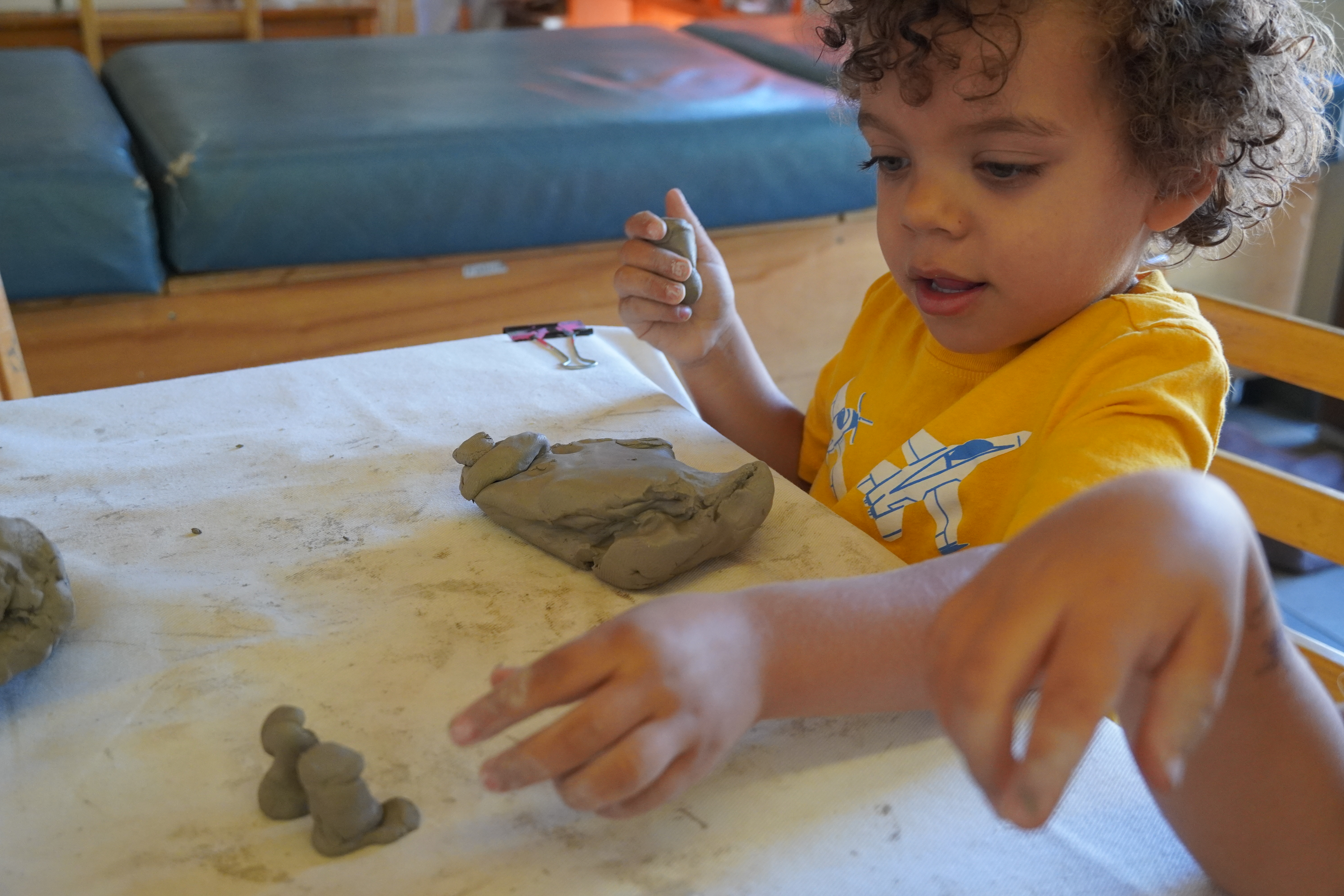 The children were able to solve some of the challenges of upright figures by making them small or wide or sitting down. As their skills with clay develop, and their familiarity with tools increases, I expect that we will see even more sophisticated figures in the future. – Amy