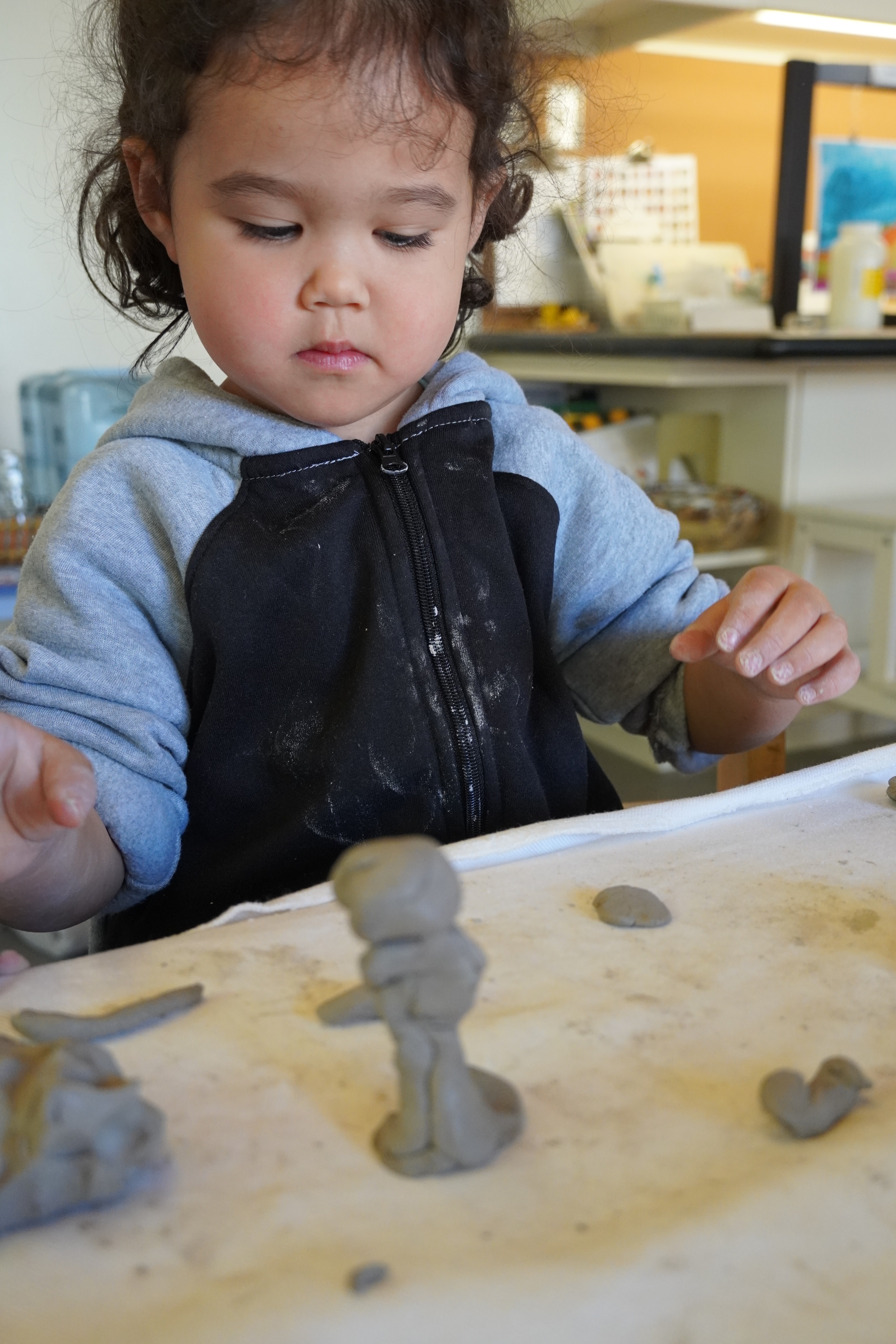 The children began to individually shape the clay.