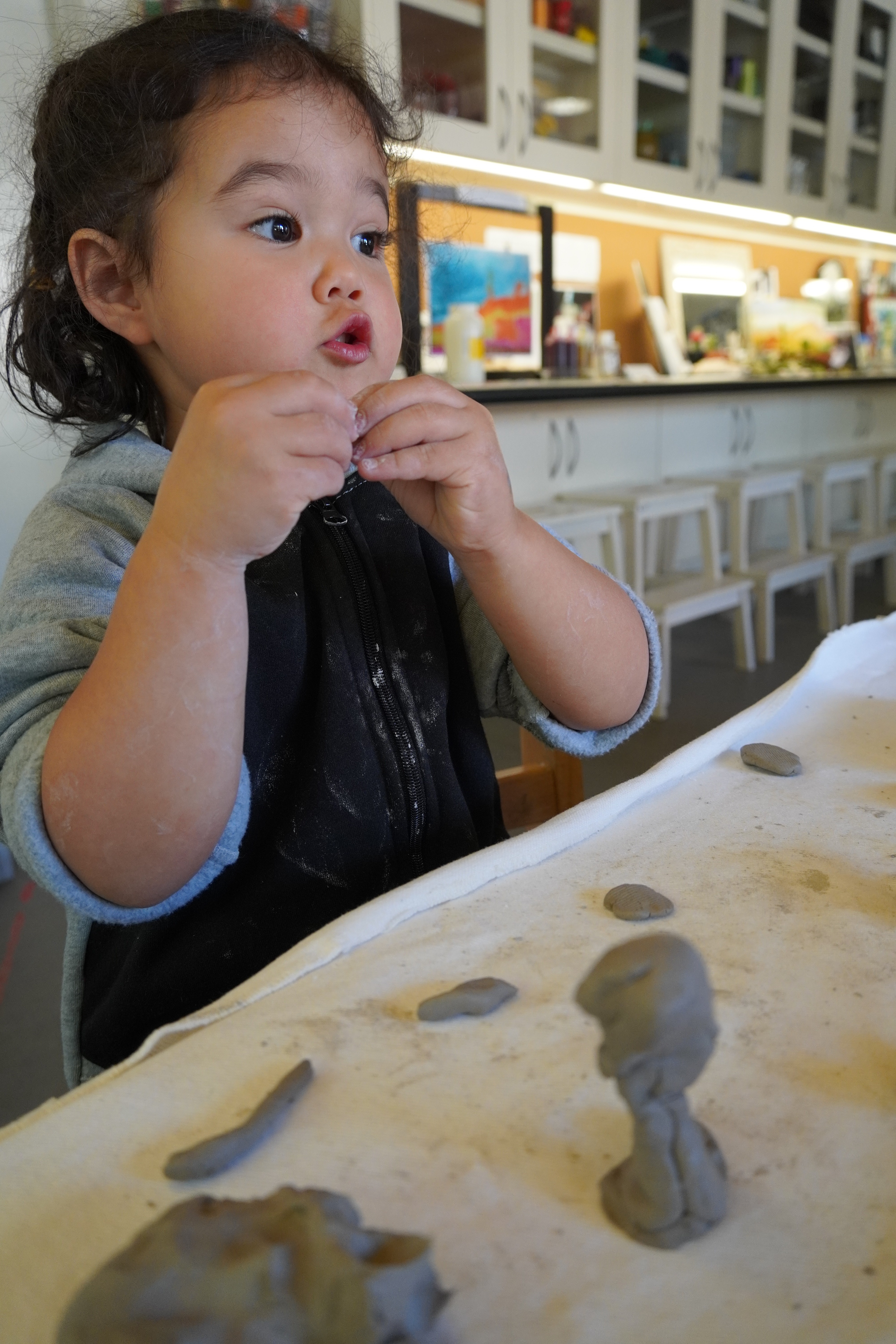 The children began to individually shape the clay.
