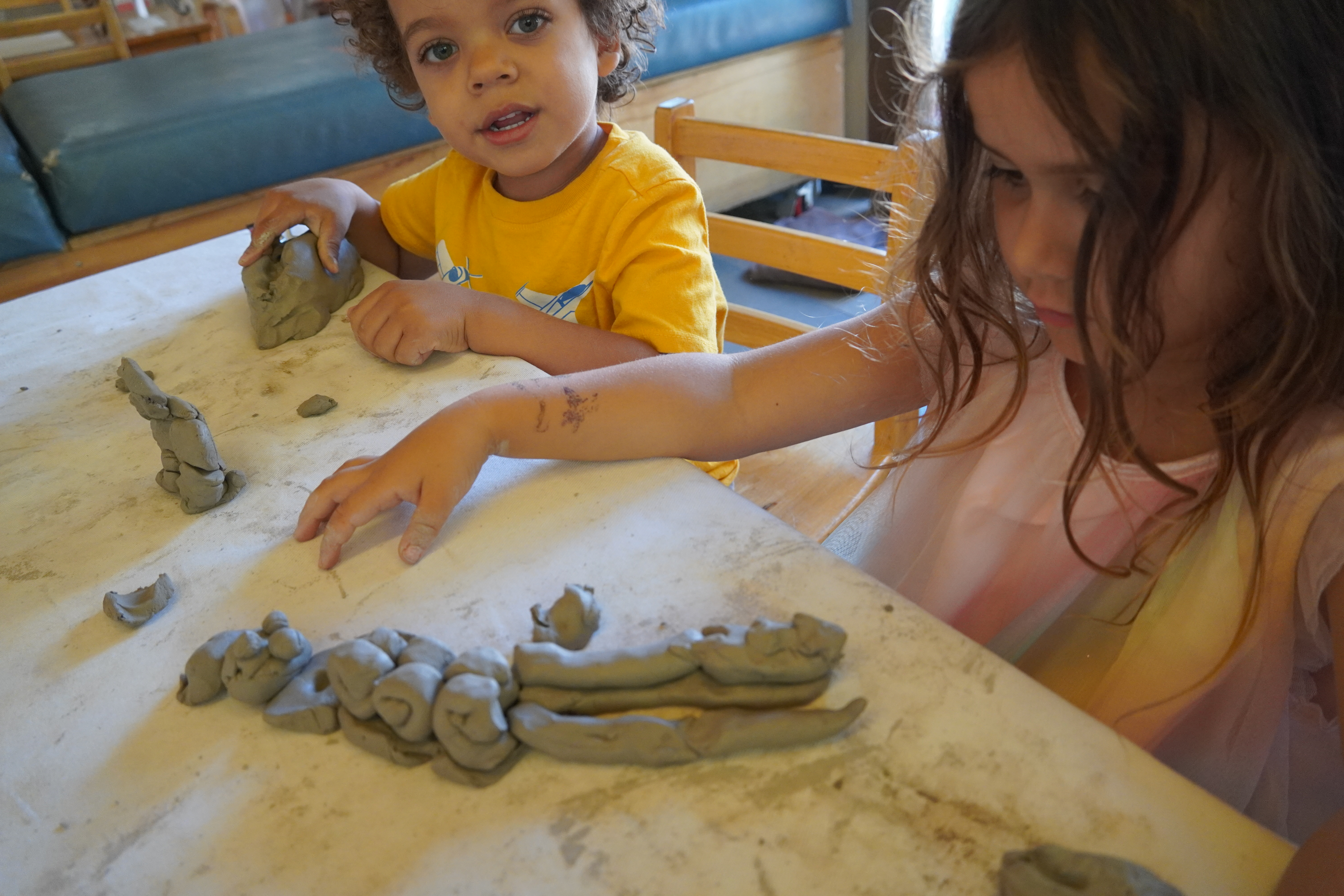 The children were able to solve some of the challenges of upright figures by making them small or wide or sitting down. As their skills with clay develop, and their familiarity with tools increases, I expect that we will see even more sophisticated figures in the future. – Amy