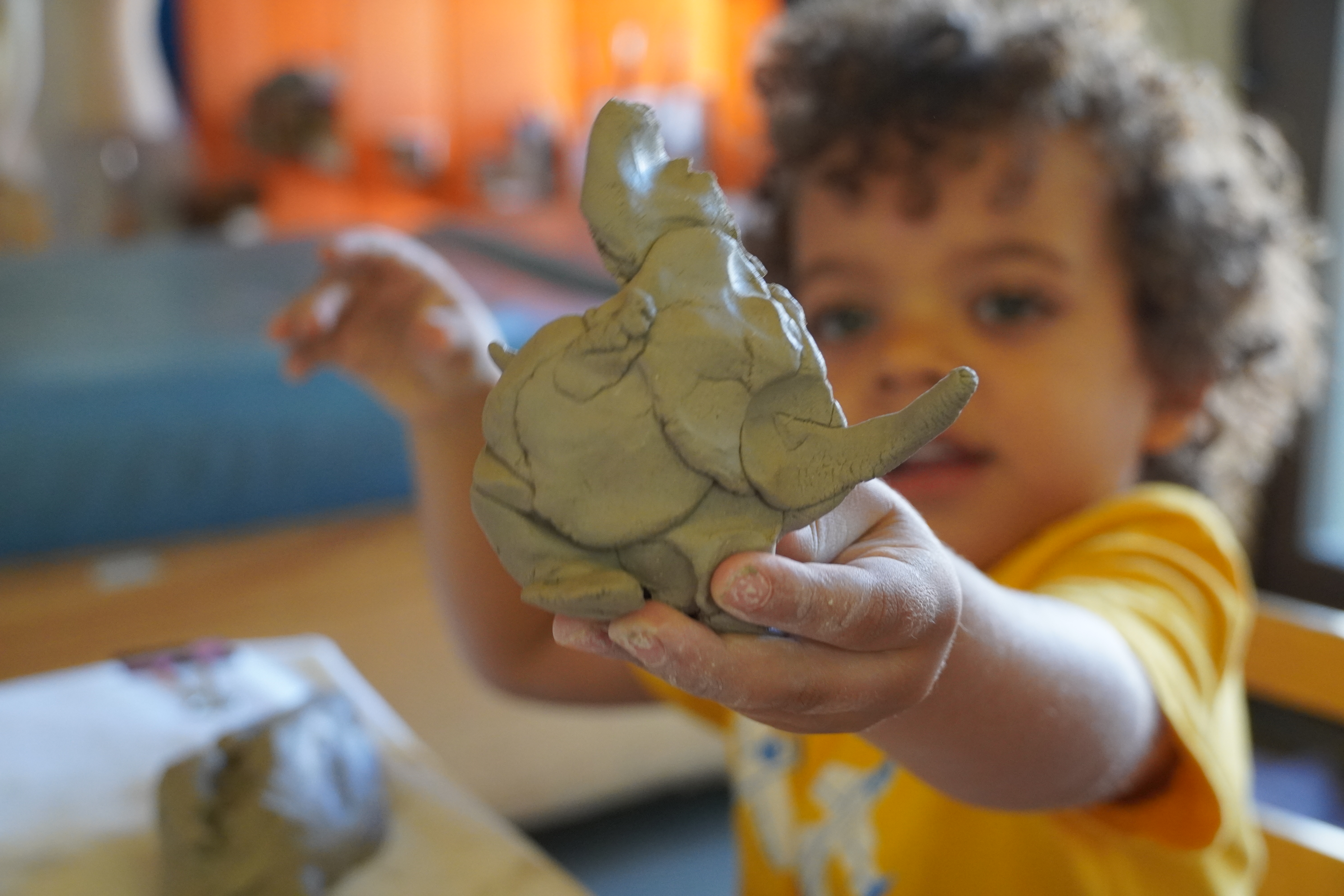 The children were able to solve some of the challenges of upright figures by making them small or wide or sitting down. As their skills with clay develop, and their familiarity with tools increases, I expect that we will see even more sophisticated figures in the future. – Amy