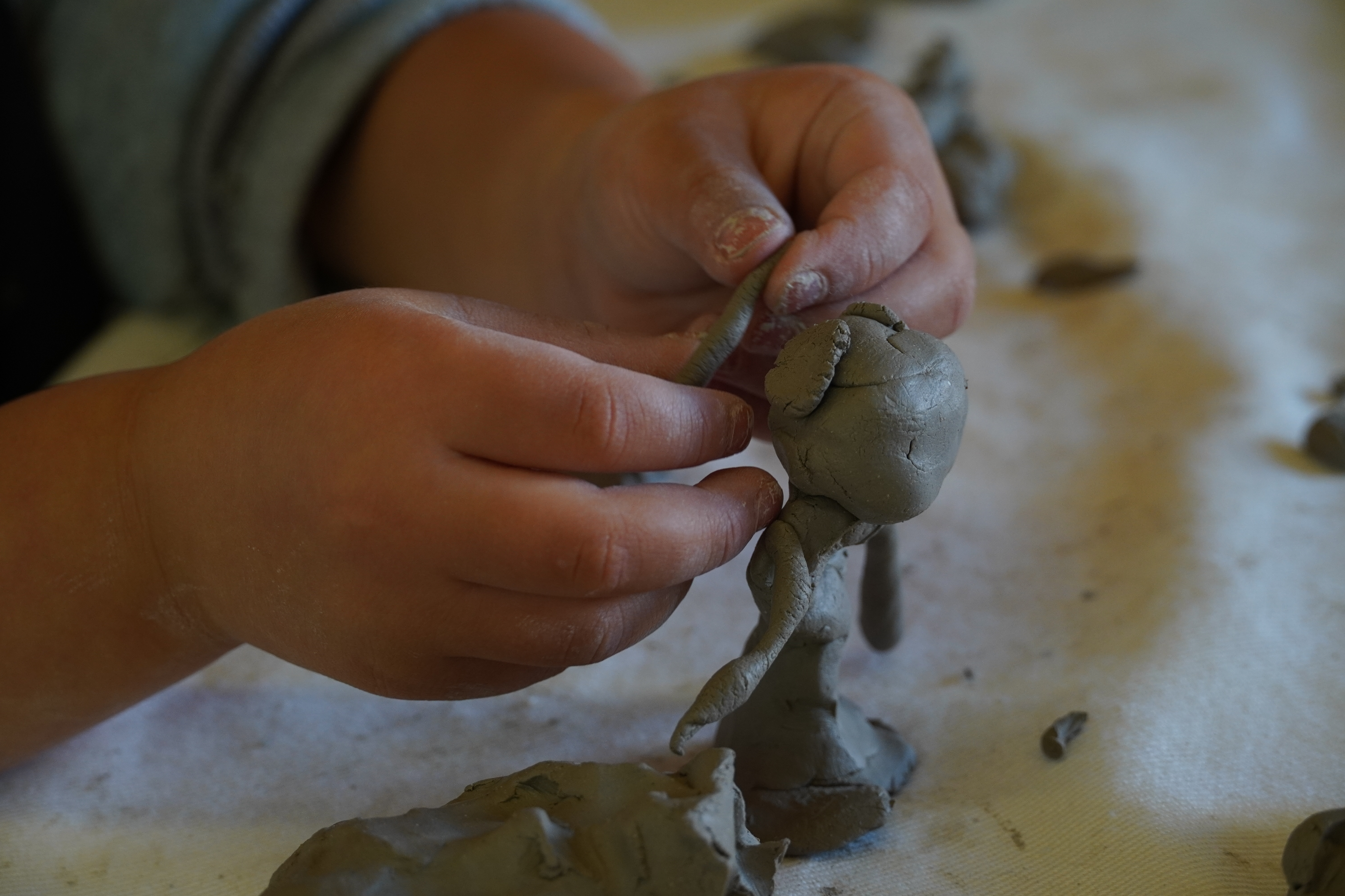 The children were able to solve some of the challenges of upright figures by making them small or wide or sitting down. As their skills with clay develop, and their familiarity with tools increases, I expect that we will see even more sophisticated figures in the future. – Amy