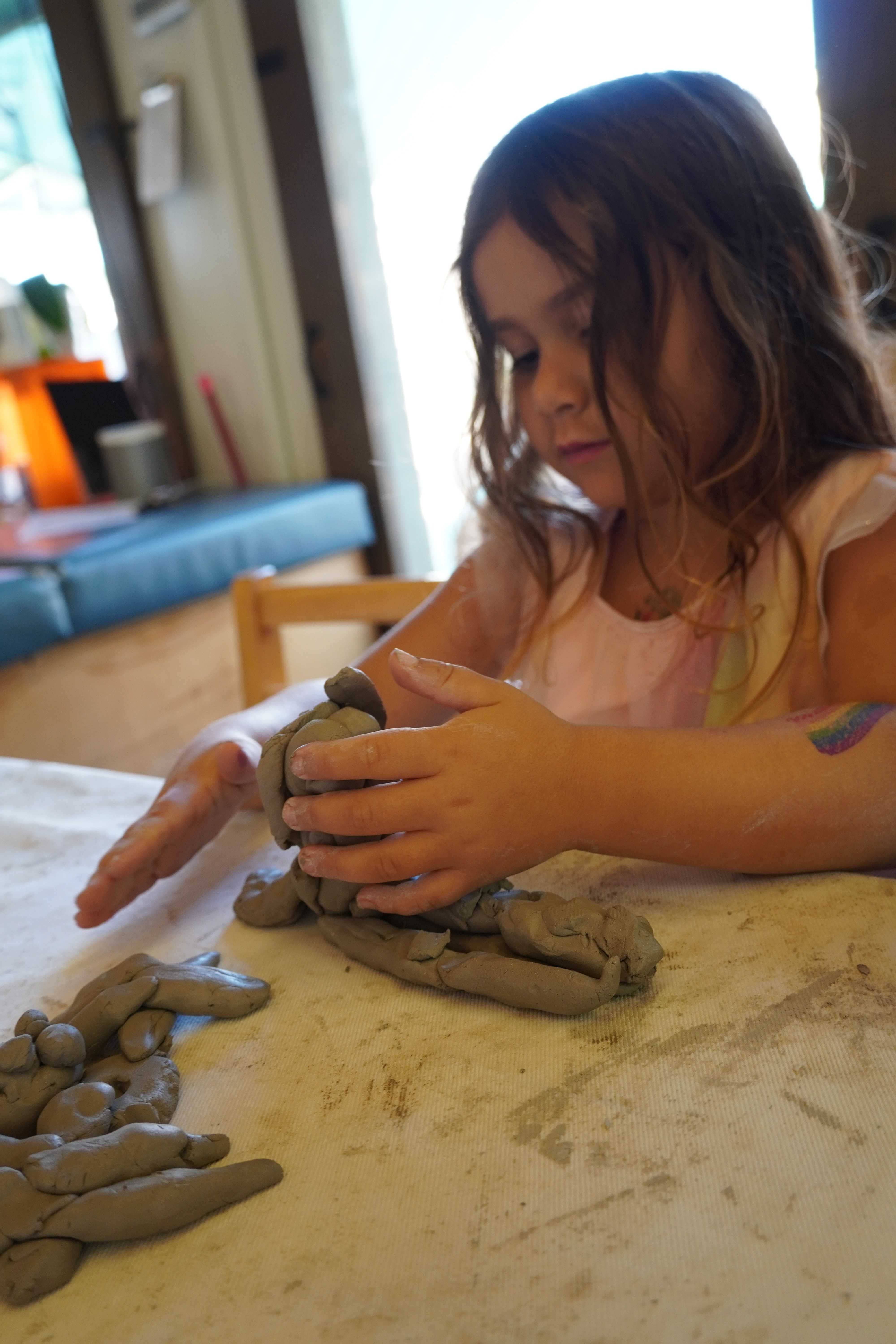 The children began to individually shape the clay.