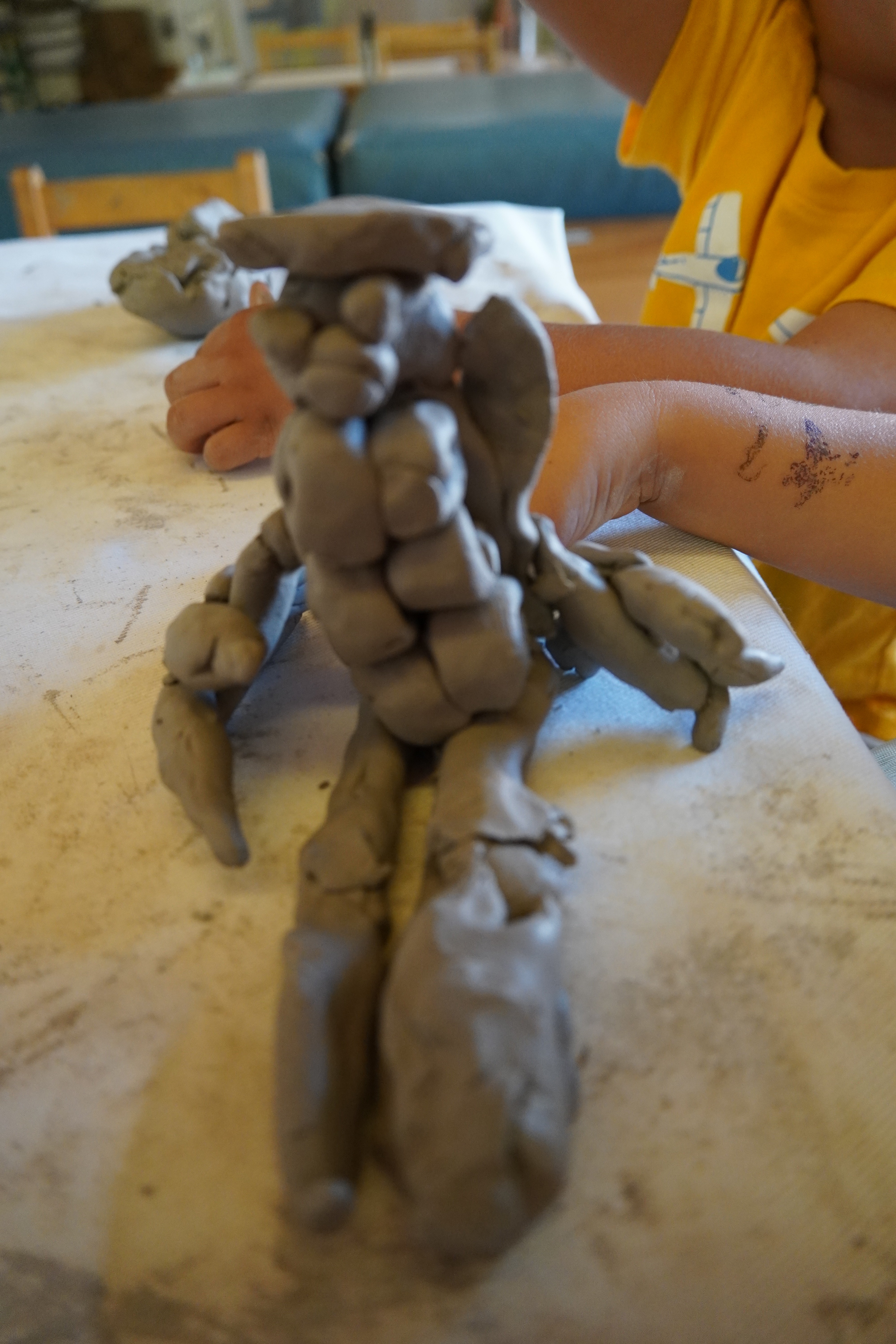 The children were able to solve some of the challenges of upright figures by making them small or wide or sitting down. As their skills with clay develop, and their familiarity with tools increases, I expect that we will see even more sophisticated figures in the future. – Amy