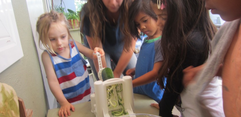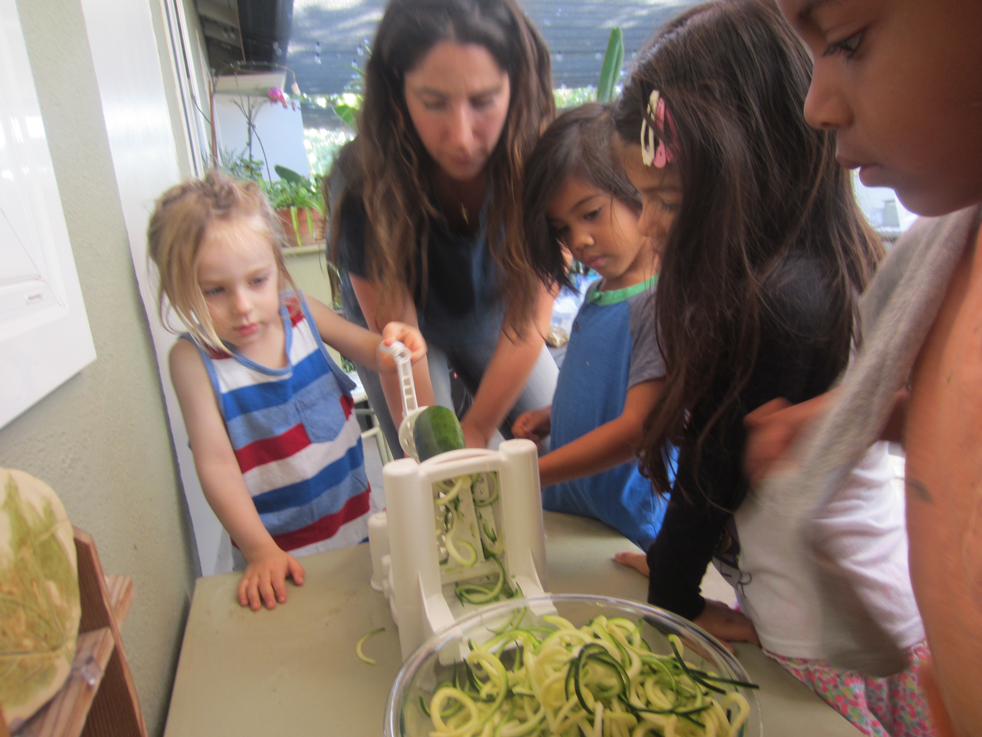 Then, the “spiralizer” was introduced. Knowing some children would not like pasta, Jess brought a zucchini alternative!
