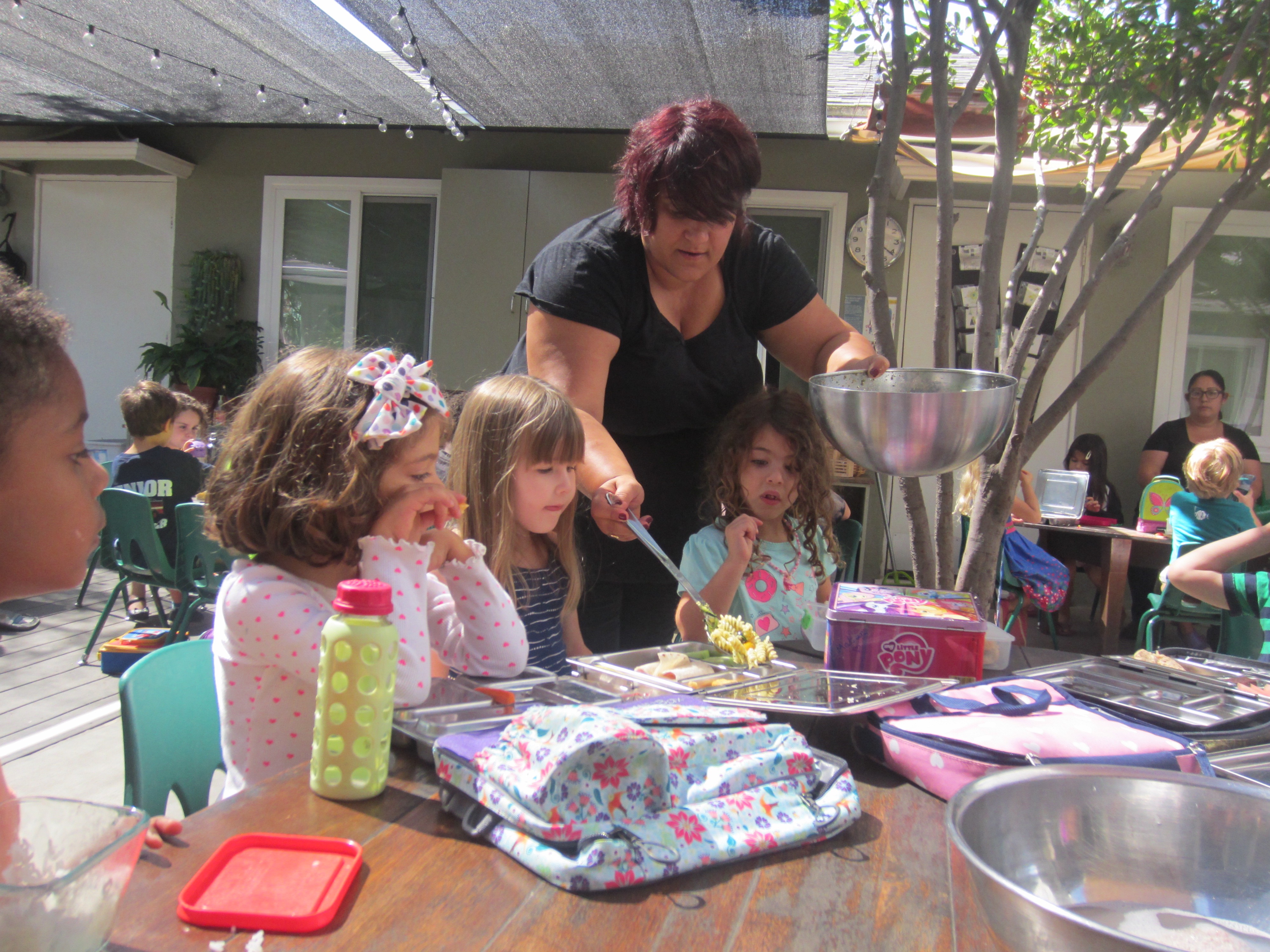 The seed pesto pasta was offered at lunch to both the East and West Wing children. Some of them wanted a taste and others declined.