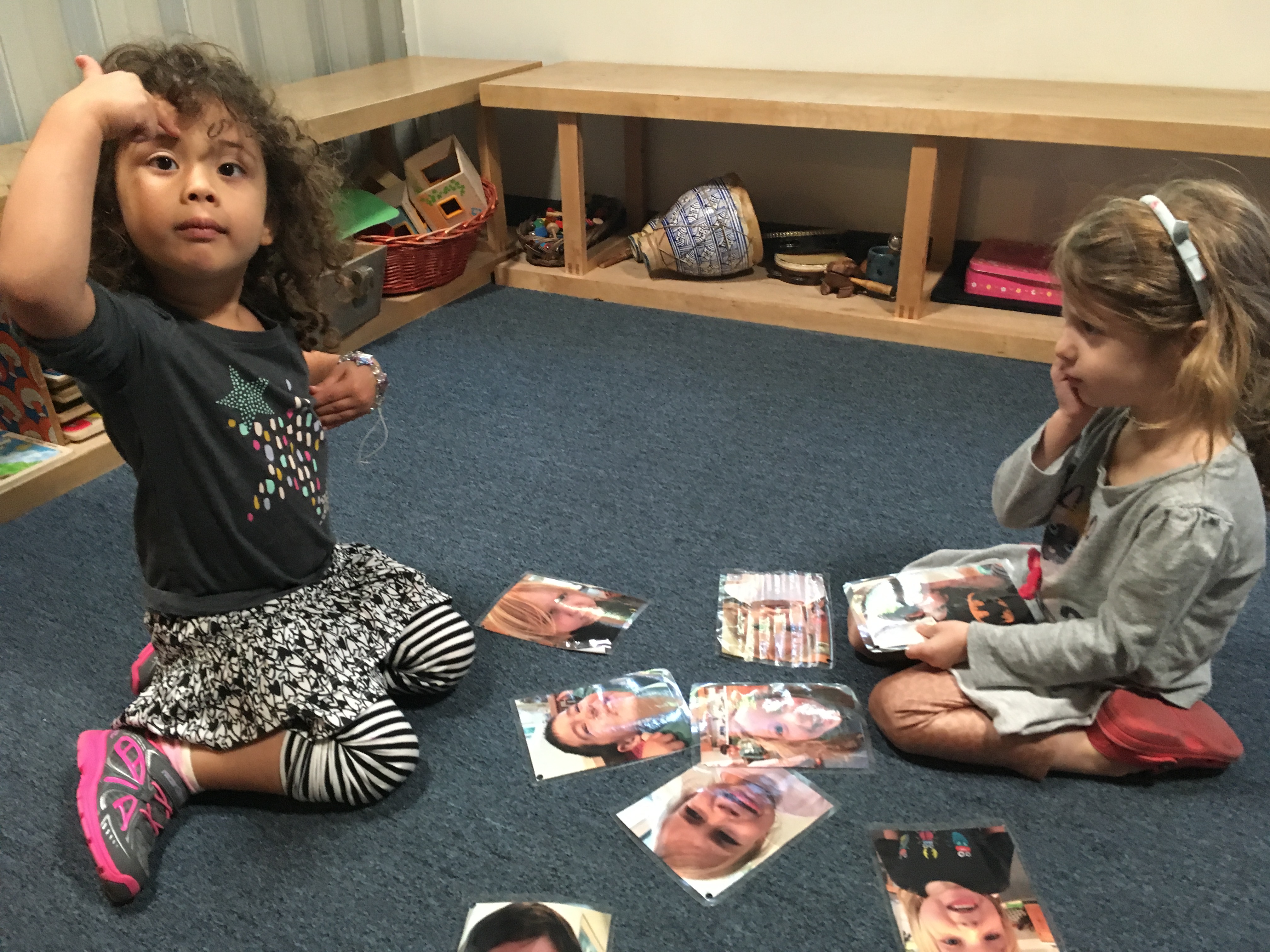 The ability to label, express, and read emotions is a life skill and helps develop emotionally healthy people. Emotional intelligence is one of the tools to building an emotionally responsive community. This work of helping the children correctly label their feelings supports moments of conflict when we ask the children questions like: “How did you feel when that happened?”, “What do you think he/she is feeling?”, “How would you feel if that happened to you?”, and “Do you notice (some feature/expression/non verbal cue)?” Soon the children will begin to ask themselves these questions and practice empathy. And of course, empathy can only happen when we are connected to our own feelings so we can relate or sympathize with someone else’s. -Teacher Jennifer