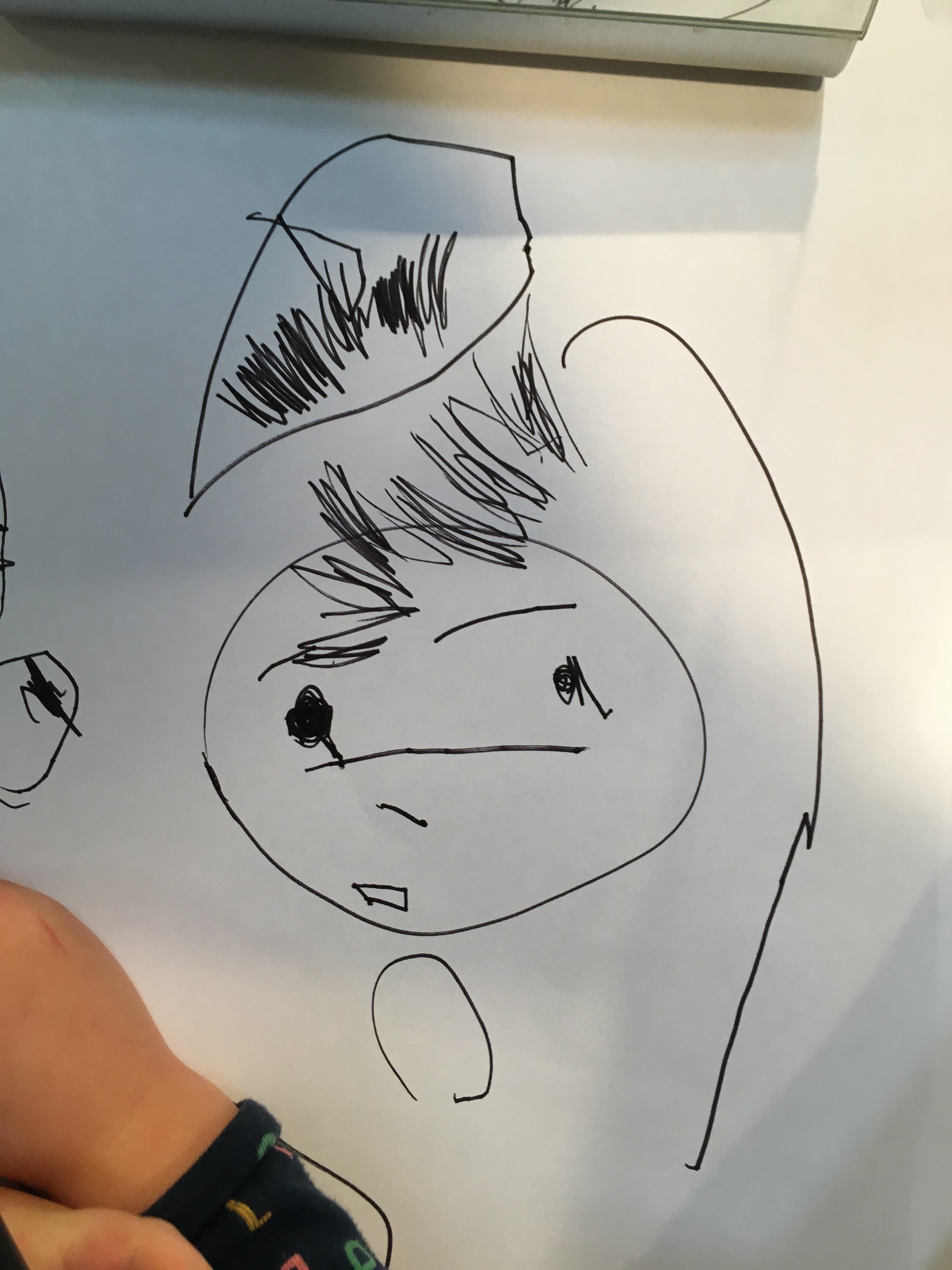 Olive and Dashiell both draw sad faces.