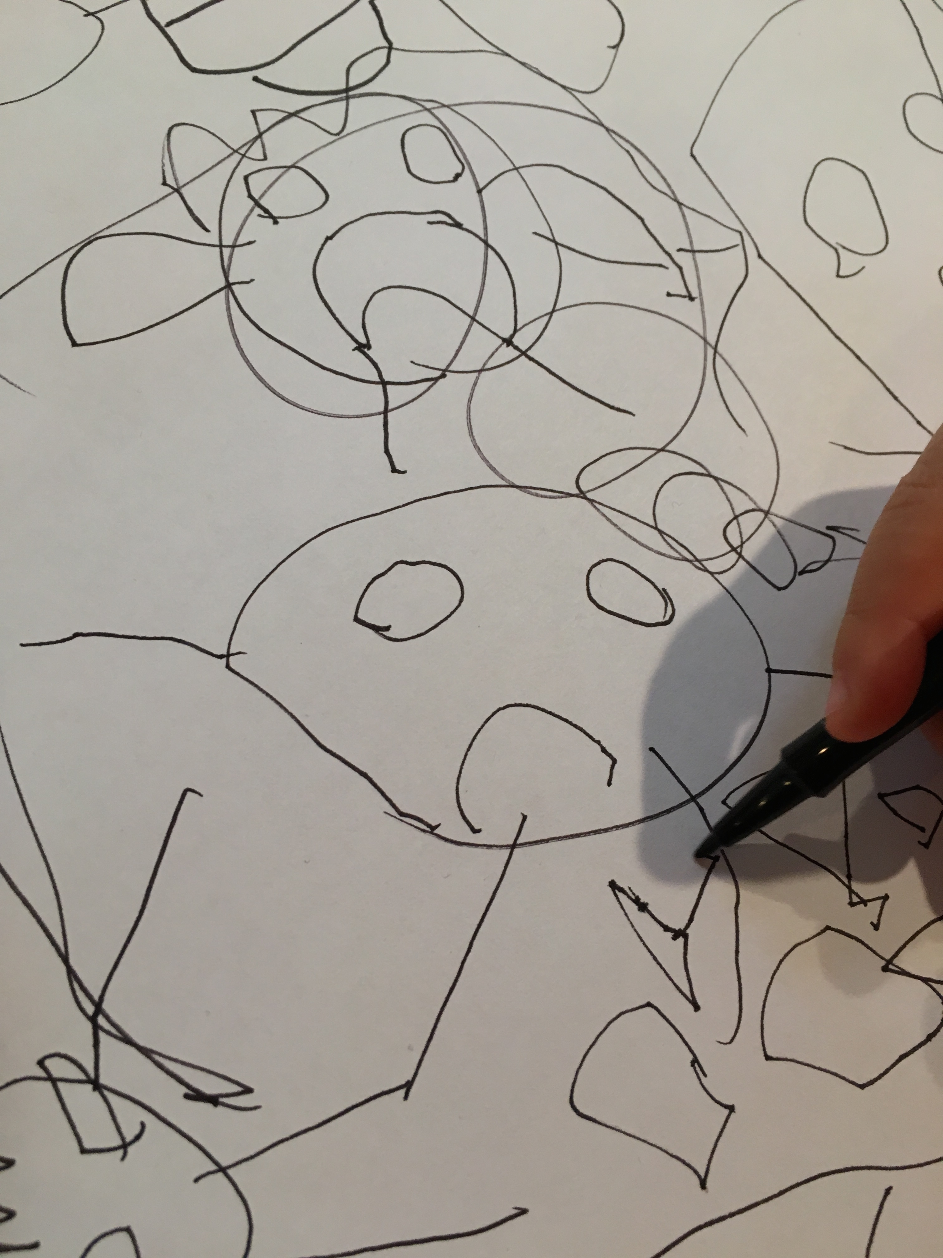 MJ: (Drawing her daddy) My daddy is being mad. My mommy always be silly because she throws me on my mommy’s bed. I feel happy. Daddy cries for pretend. Only mommy feels grumpy.