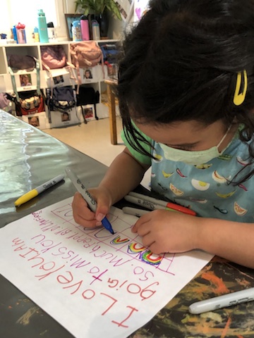 Poppy and her family will be traveling to New York for the rest of the summer and they will be missing our group graduation so we celebrated her last day with us on Thursday. The children spent Poppy’s last week making cards, posters, having special appointments with Poppy and celebrating their relationship together. Below are some words from our Basil and Aloe Vera friends: