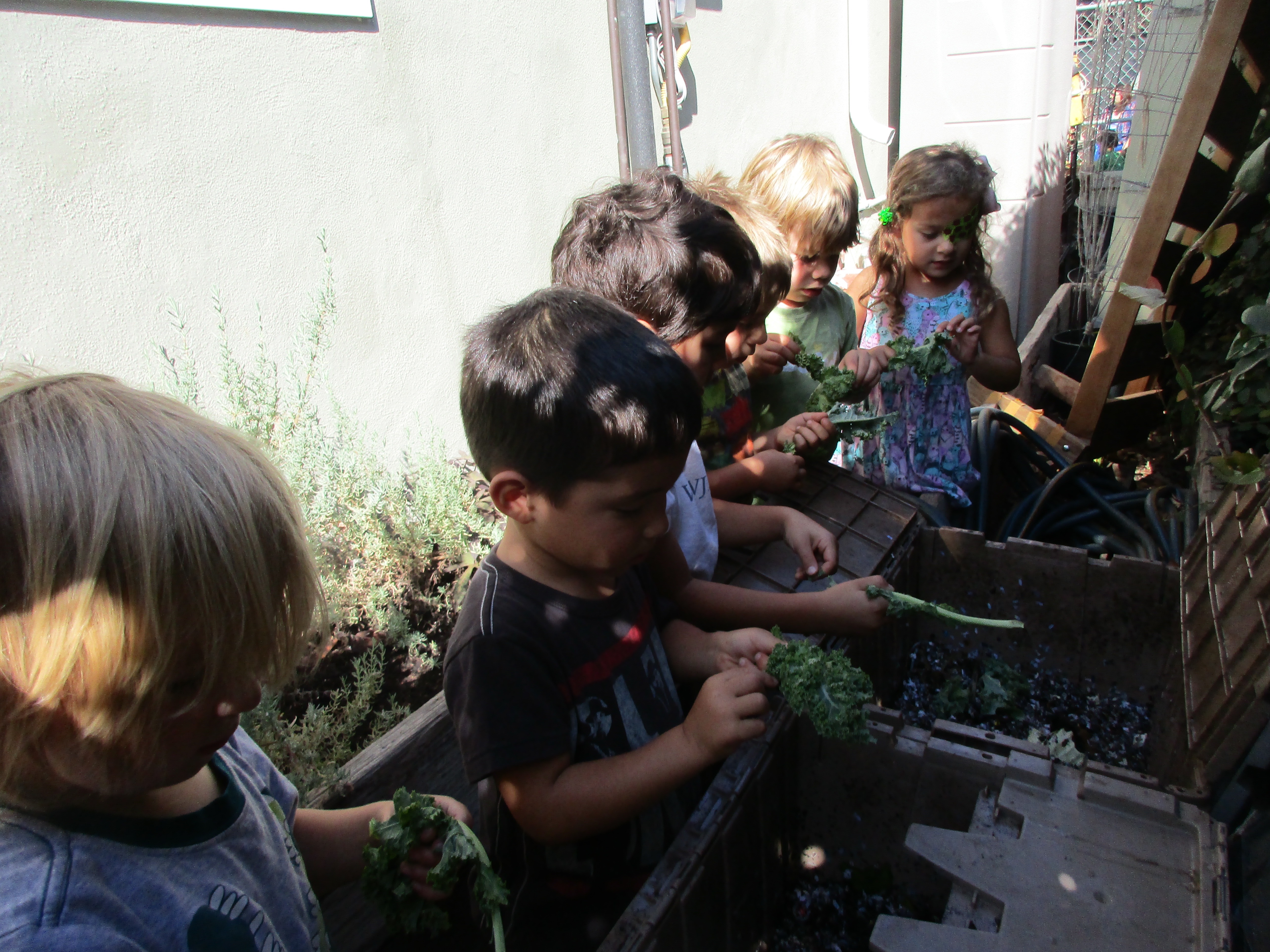 The children were introduced to learning how to take care of worms to help the whole school garden. Both the West and East Wingers participated in feeding them kitchen scraps, cleaning the bins, and taking care of the bedding with recycled paper. We have seen the children’s innate love of nature come through in practical ways – they seem to have a time clock in their bodies that rings: “feeding time”.