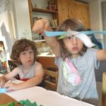 Teacher Jen: Hi, I’m Blue. Can I play with you? Sure, but how can we play together?Jen asks the children to help come up with ideas.Children: They can be welcoming and invite more friends to play.The children began to connect strips of blue, yellow, and green paper together in ‘play’ with brads and awl.Provoking more interaction between the children, Jen prompted, “How can blue, yellow, and green play with each other? How can they welcome more friends?”Will: I will bend it and then they stand.Lucy L.: I want to do that. (Will shows her how he bent the paper)After a week of getting used to the techniques and materials, Jen recognized some friendships forming. She added the children’s photos and asked, “Who would you like to connect to?”Ennio, remembering his teacher’s home visit: I want to connect with Silvana because she went to my house.Phedon, recalling playing in the sand area: I want to connect to Kayden because he loves putting the water in the hole in the pipes.