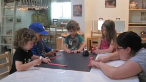 This process of revisiting ideas and utilizing materials independently is the foundation of our classroom work. Having the children illustrate their ideas is a valued form of daily communication. As it turned out, it was agreed that the tape held the mountain shape better. Negotiating through hands on experiences and learning to share ideas and participate in decision making is key to the preschool experience – and, lots of fun!
