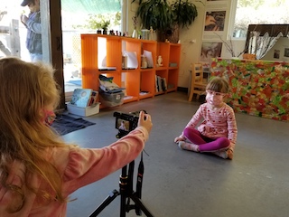 The emergence of self is one of the most elemental parts of childhood. How do children construct their individual and social identities? How do they evolve a sense of personal uniqueness that is distinct from other individuals? One of the ways we studied identity with the children in the West Wing was through self-portraits. While looking at themselves and their peers, we encouraged them to speak about what they noticed so they could deepen a relationship with their physical selves. We structured these experiences in group settings acknowledging the interdependence of self and social context. We continued our study this year by updating their identity panels. This process helped them reflect and express how they see themselves in their social world and what they want others to know about them. Our interview questions reflected our current context and explored how they could stay connected and communicate with each other when there is physical space separating them.