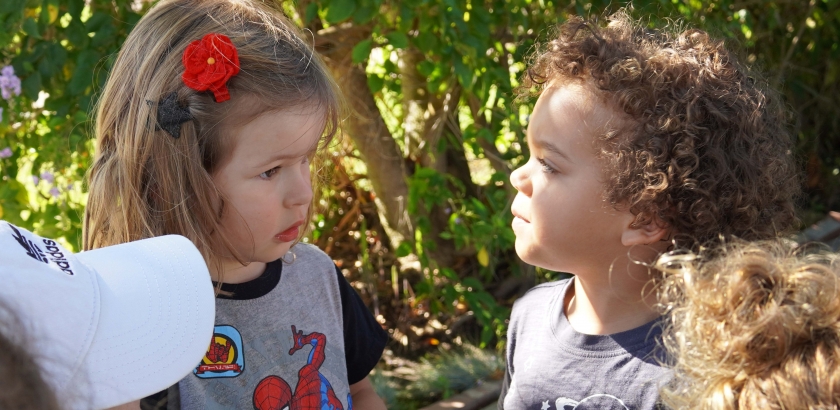 Our community walks are to develop a sense of place with our community and right now, because it’s halloween, we understand that our children need time to process their emotions about the changes present this holiday. When Poppy encountered her feelings, her peers immediately supported her by checking in and asking questions of the neighbor creating a more intimate moment to process emotions while we walk toward calm feelings together.