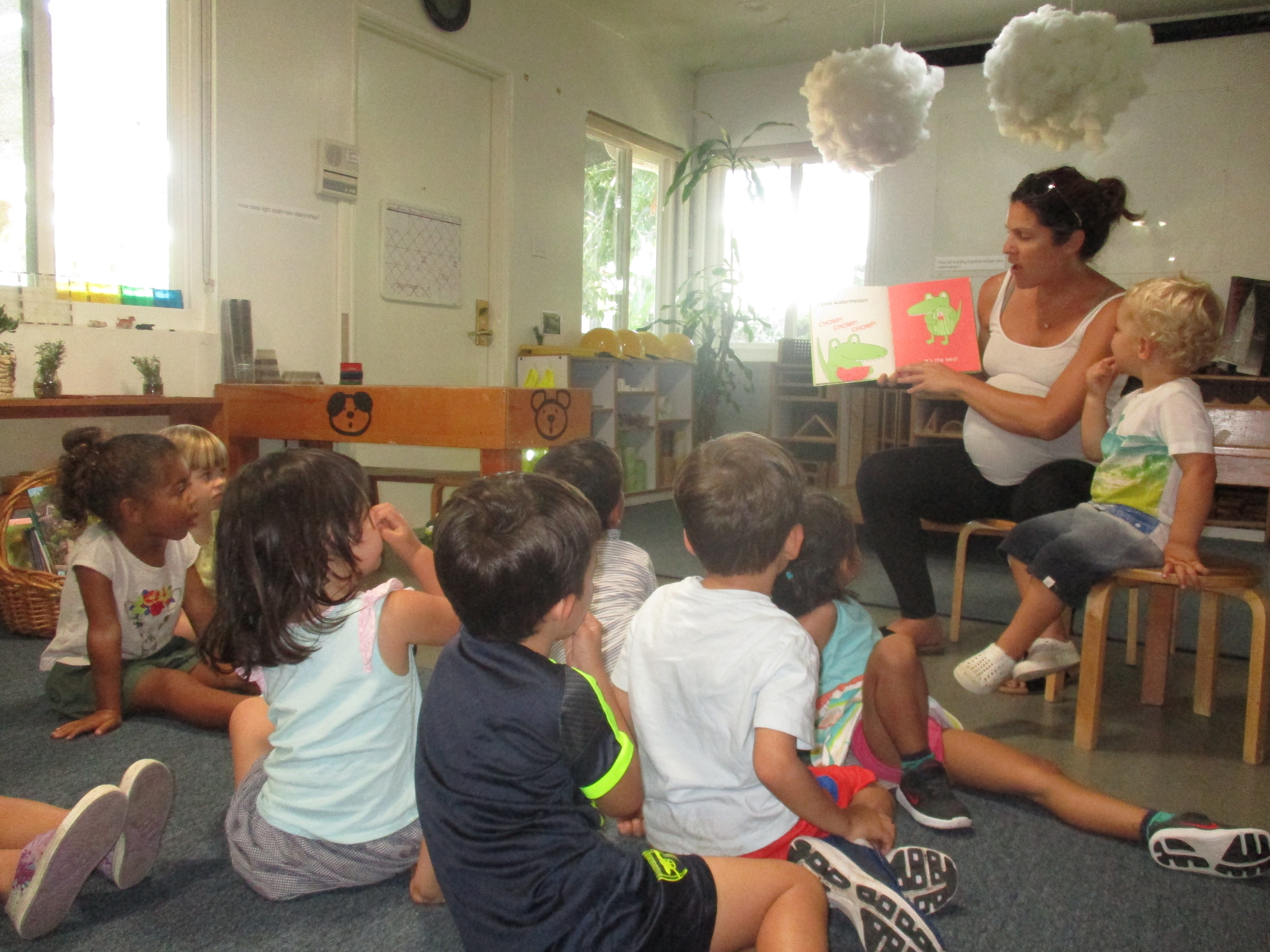 Leo’s mom, Heather, came to read a book to the group and shared that they are moving to a new house in Rancho Palos Verdes where they will have a backyard for Leo to play and run. With a new sister soon to be born, there’s lots going on in the Formichella family. Leo is excited about his new school and his new house and invited the group to come over.