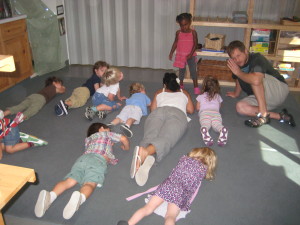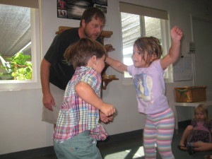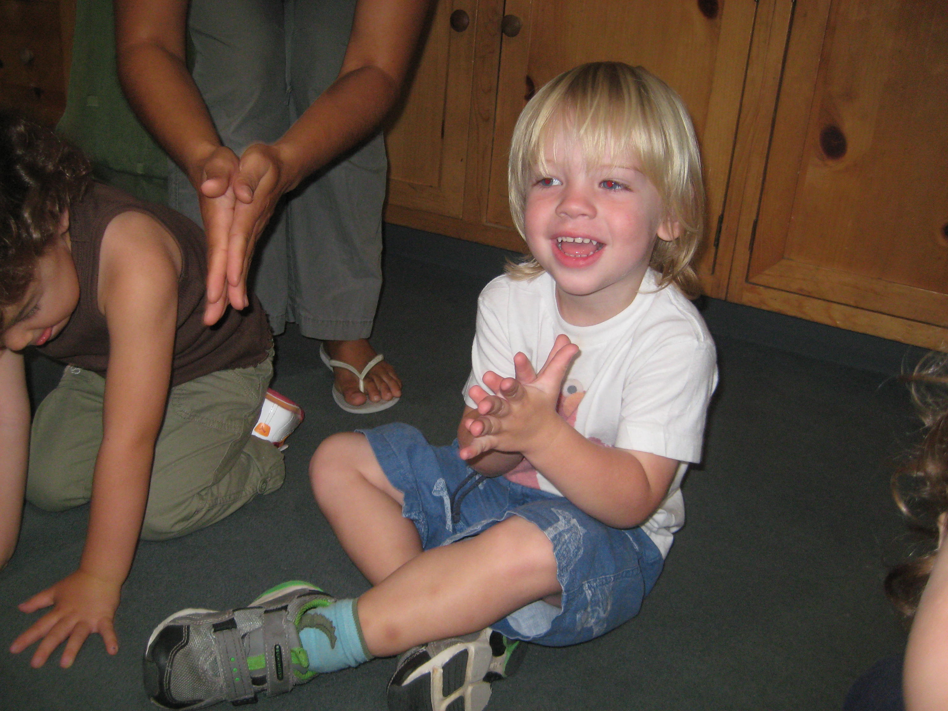 Kyle then demonstrated for the group what a soft feet kicking sound sounded like. They explored soft and quiet sounds with hands, feet and shoes.
