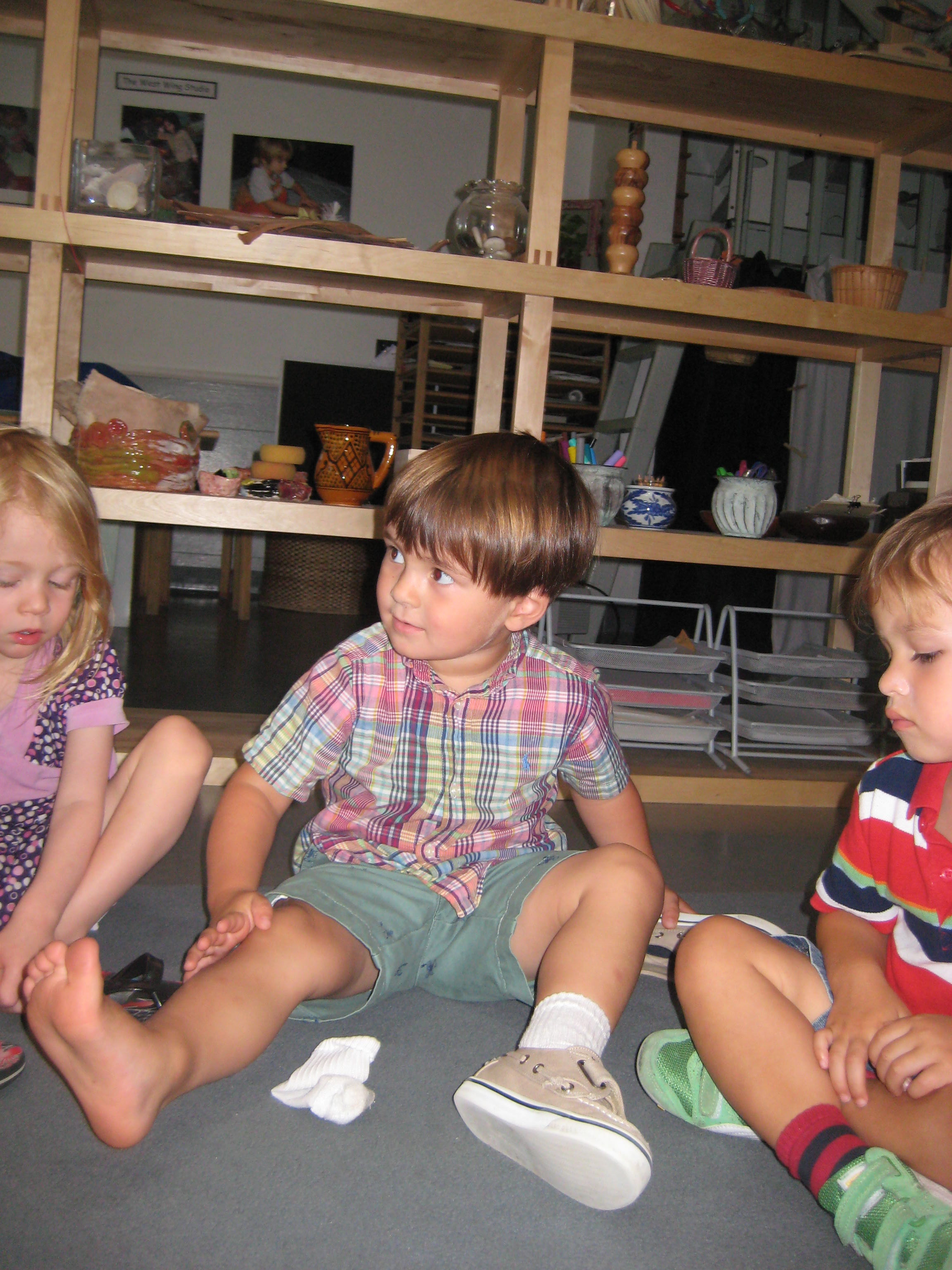 After making hand sounds, it was only natural that they wanted to make feet sounds. Michael began kicking his feet loud on the ground, with and without shoes.