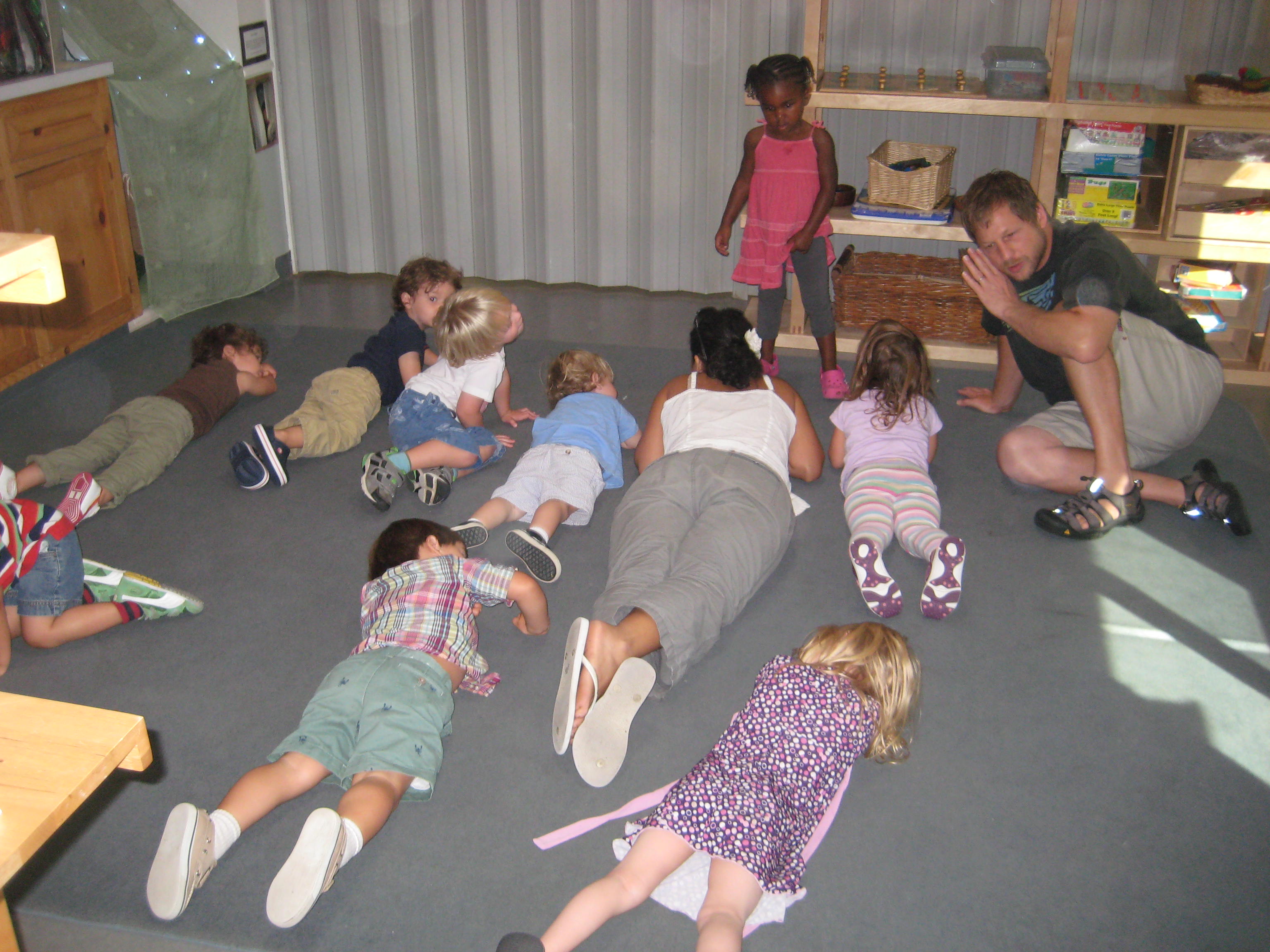 He was ‘unveiled’ as a “sound and music expert”, who comes to help us investigate these specialties. This Wednesday morning, the Rose group worked with Stu and Paola. They explored sounds made by the body. This came up organically while “warming up” their hands to get ready to clap for the introduction song.