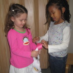 Lucy C.: “Here you go.” (handing Laurel some tape)