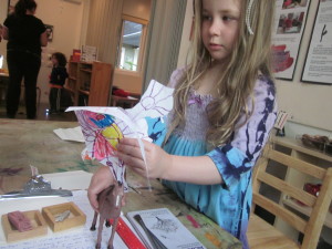Michael counts: “1,2, 3.” He and Deia repeat measuring the paperclip. Everyone wants to make a 2 or 3 inch fairy.