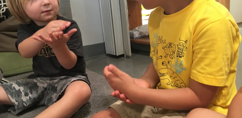 But as we noticed the children sign these same ‘reminders’ to their peers, we realized there was a strong interest in learning more vocabulary. Now on every Thursday afternoon, we have an ASL Meeting time where we play simple games, sing songs and have even attempted to tell stories in ASL. Some of the words that we are practicing are: