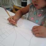 At this moment, we still had small containers where the children can put the spiders as they observe them. I decided to remove the containers and create a more intimate moment between the bugs and the children to research one of our questions about how an encounter with bugs feels and if that were the draw.