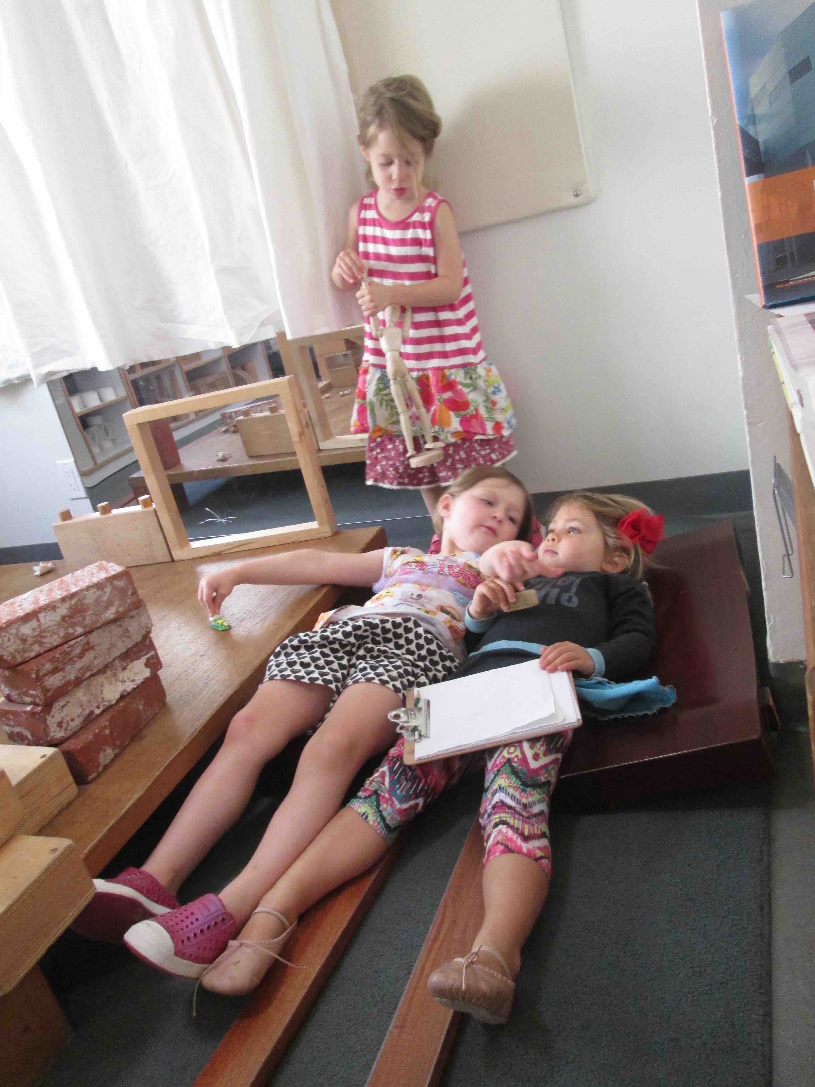 In the children’s first experiences in the block space, the materials bridged connections between children who shared building plans, beds, and a family. A shared experience invited multiple points of view and we see the beginnings of social/emotional negotiations as we construct meaningful relationships with each other. Juliette and Madeleine defined roles without conflict and the group worked together easily to meet Flora’s challenge. -Teacher Flora & Kristin