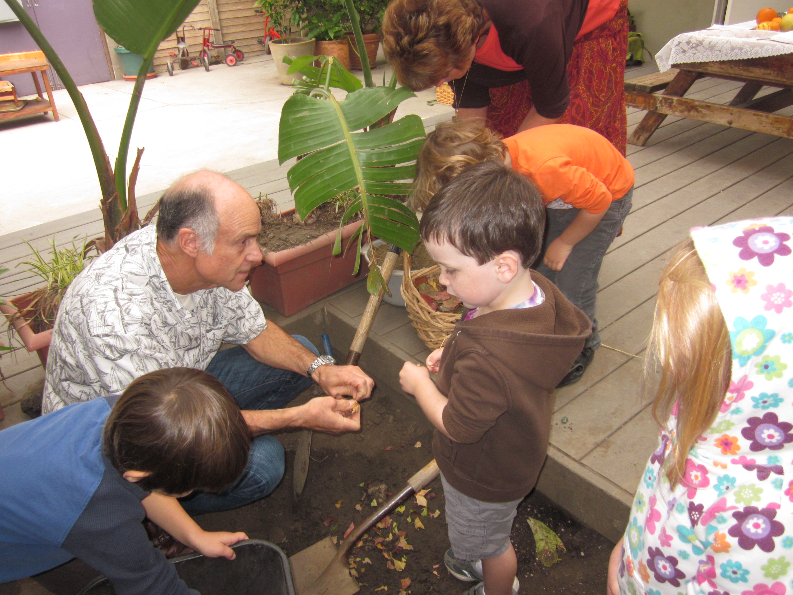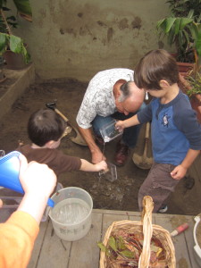 Paola, in preparation for Baba Lynn and Papa Helms (Lev’s grandparents) visit, took a group of children on a walk to gather some materials with Adriana.