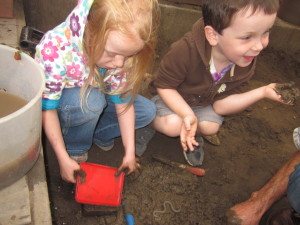 The bricks are now drying outside and there is great interest in making more. Thank you to the Newhall family for getting your hands dirty with us and adding so much to our knowledge of bricks! We wonder, what color these will be when they dry….