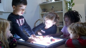 “If you want to see the red, look inside these holes. You put it on top like this.” – Felix