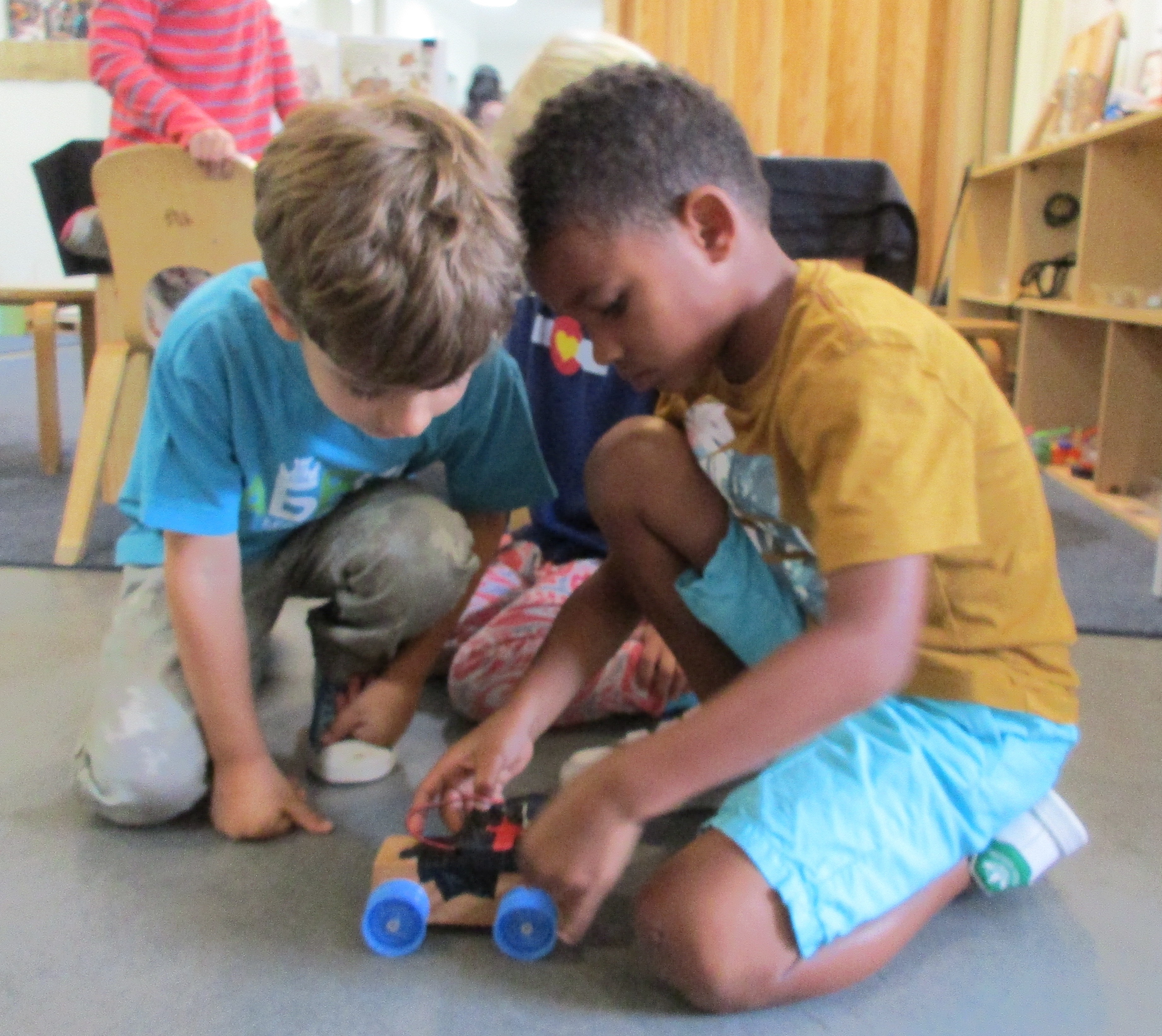 After this experience, we decided to collect more ideas, modify the design of the car, and test the various prototypes. While the children collaboratively work, they are engaging in the design thinking process which is an iterative approach to solving problems and creating contexts to engage in discourse. As we continue this investigation, I wonder how these experiences will support us in viewing individual ideas as an avenue to build collective bodies of knowledge and move away from claiming ownership of those ideas.   -Teacher Susan