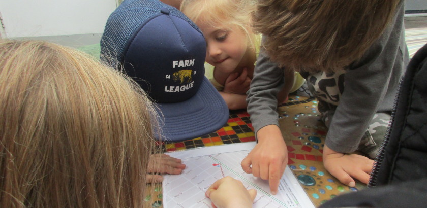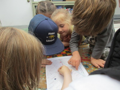 When the children planned for the walk, they agreed to visit someplace new. As they looked at the map, Laz placed a dot where he thought the group could visit. Aiden used a marker and started at New School-West. Laz created a second, longer route. He said, “So we can get lots of exercise” but the group didn’t want to “get too tired”. So they planned to come back on only some of the roads Laz marked.