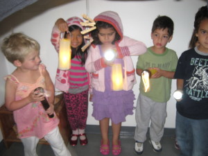 All the children retrieved a lantern and slowly tippy-toed under the loft with lights bright.