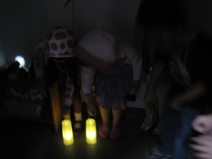 The children were able to work through their fears and become empowered by their own control of lighting and darkening this exploratory space.