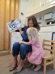 Birthdays were celebrated, too, by Clem (EW) and mom Sammy as well as Lily (EW) with mom Amanda and dad Sean reading a book at morning circle.