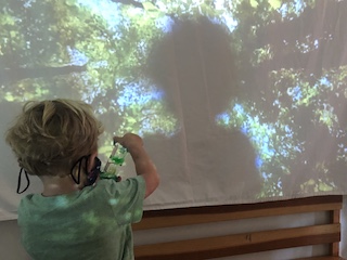 Light and shadow play gives children an entry point to shared experiences. After all, there is a universality to shadows; we all have one. We see here how the children recognized their ability to use light and shadow to interact with one another (shadows can touch each other in a way that our physical bodies cannot yet) and transform their own environment.