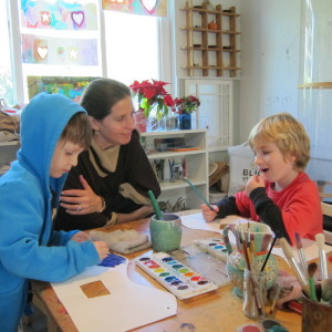 A lot goes in to the holiday celebrations at NSW – the children learn songs, the teachers support decorations and practices and parents get involved too! Samantha Soule (Ophelia’s mom, EW) has come before to supply materials and instruction for making lanterns to light up the winter night of our holiday show. This year she worked in the East Wing all morning with several children.