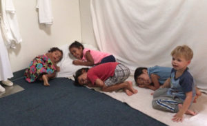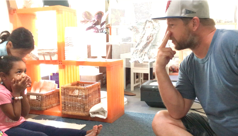 By asking the children to listen not only with their ears but also with their eyes, Stuart bring the group together, establishing awareness of others and inviting our mantra for the week, listening with care, into our sound and movement. Listening, really listening, is more than leaving space for someone to talk. It means hearing someone’s words, seeing their expressions, and responding. – Jessica
