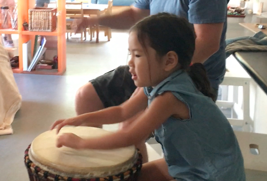 On our first day back in the new school year with Stuart, our intention going into Sound and Movement was just to reconnect with Stuart and his instruments. He brought back his djembe and guitar, instruments the children became familiar with last year, and a few familiar games.