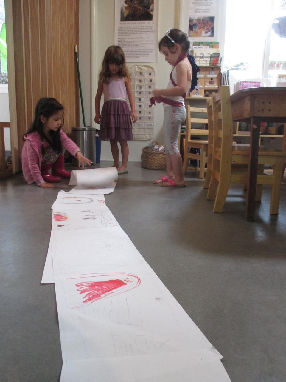 Their creation grew and grew and grew, longer and longer, so long they had to move to the floor.