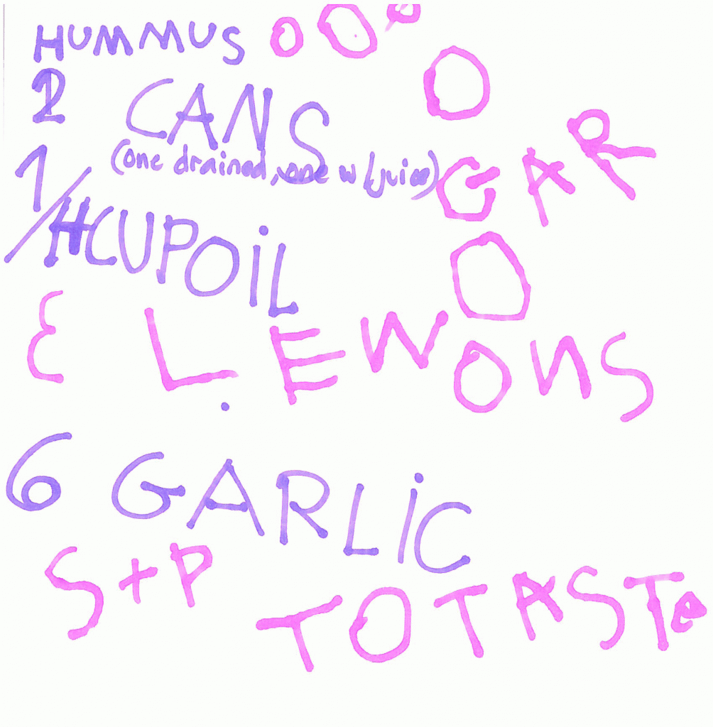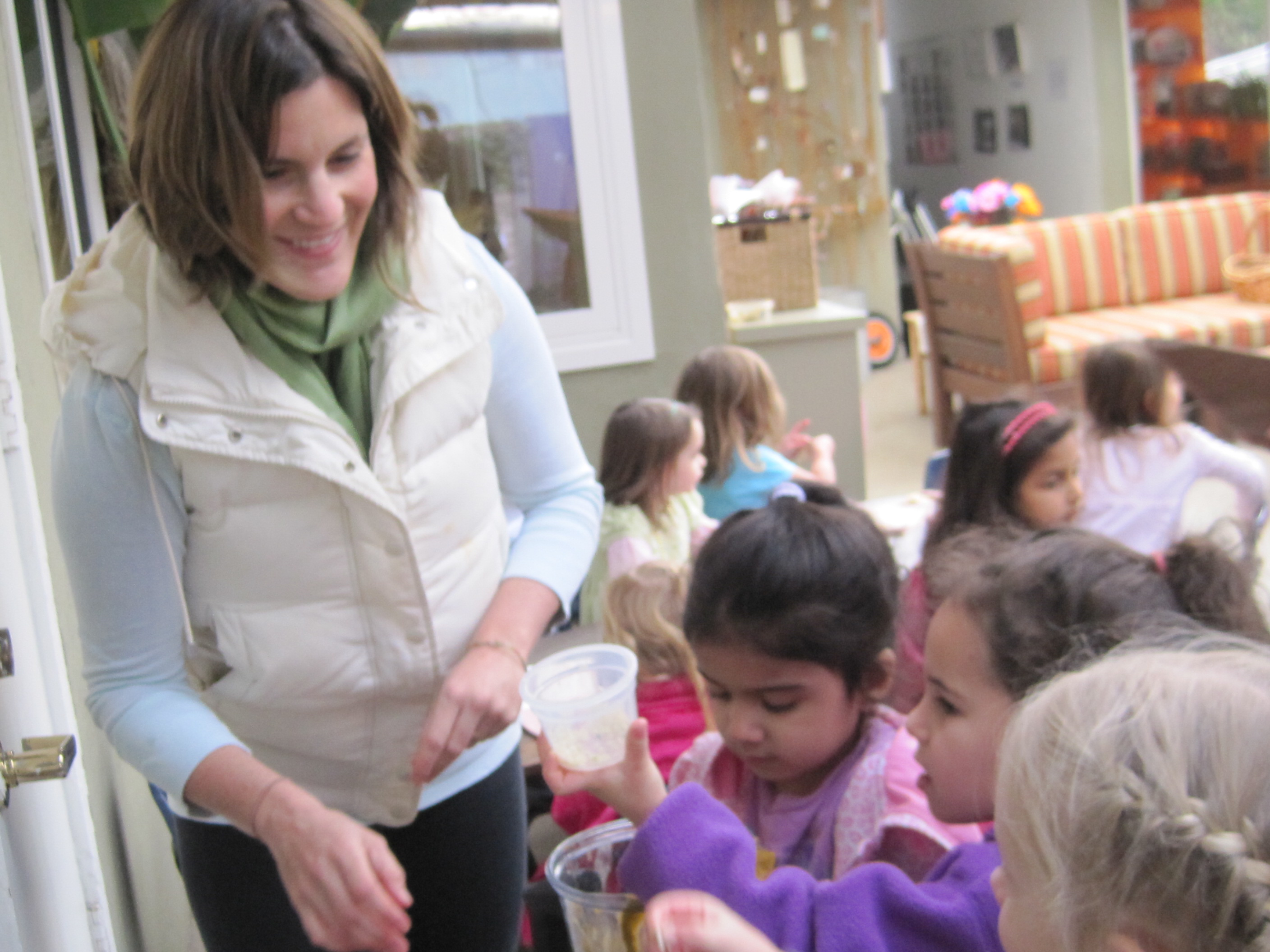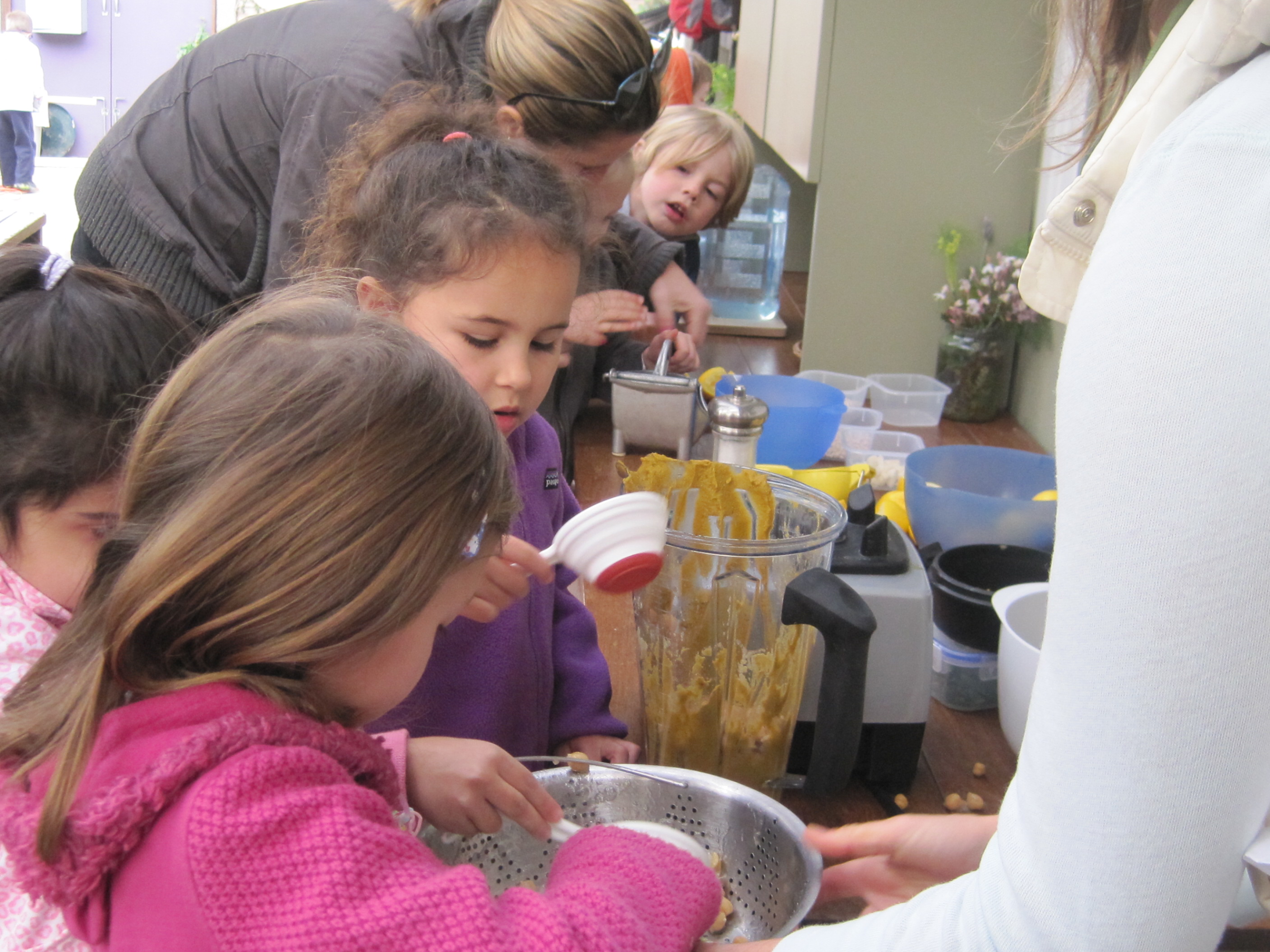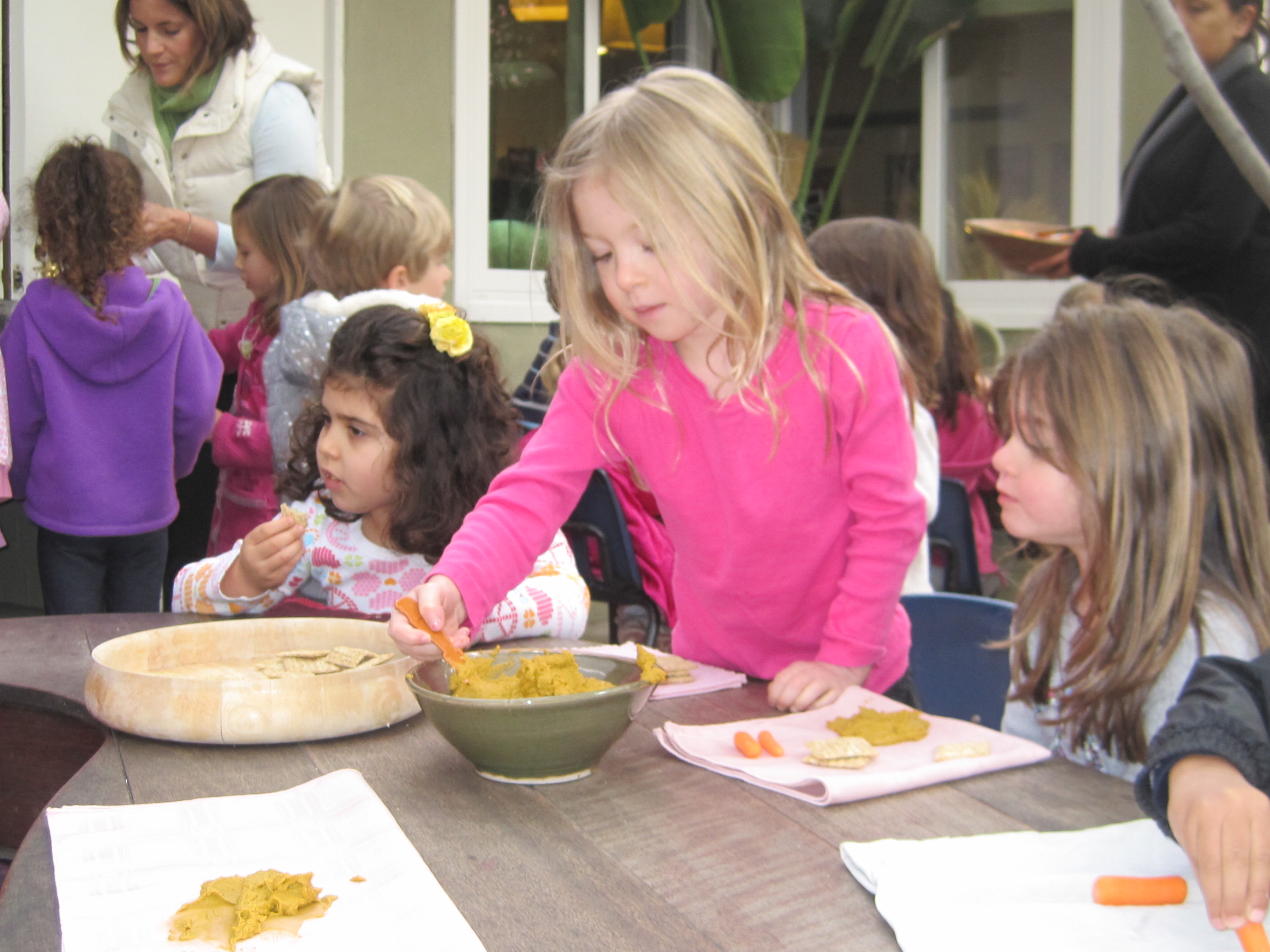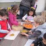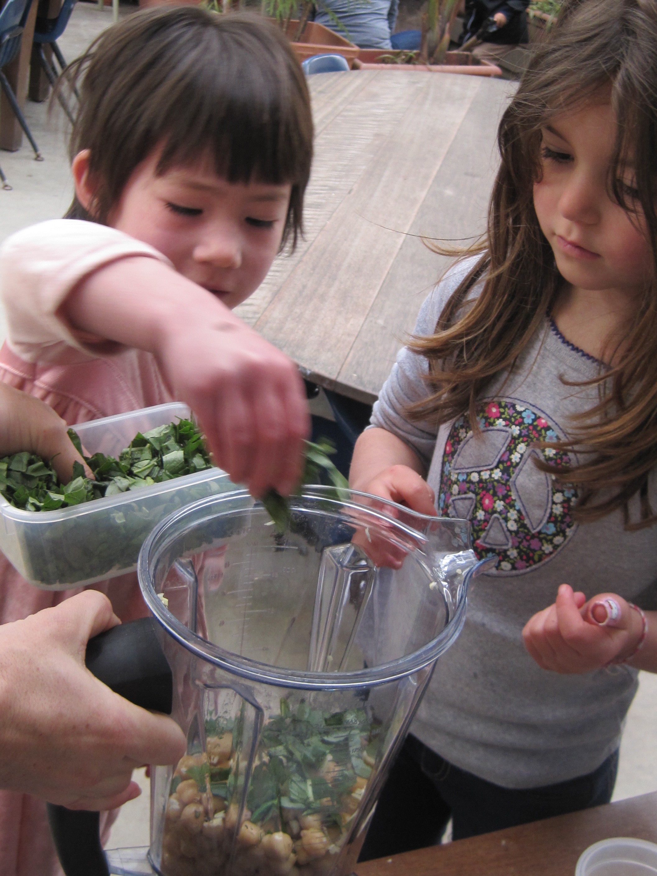 The children experimented with several recipes and created a basic hummus recipe for each friend. You can add basil and tomato or garlic for a new taste. The recipe is in your outdoor filebox and the translation reads: