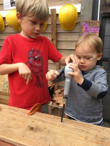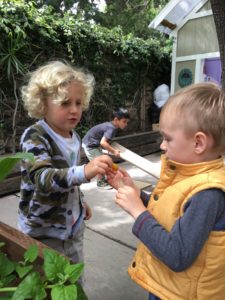 Ozzie As he notices Will, one of the playdate children, wanting to use the hand drill: Oh, here. Look. Put one hand on the top. Now you need to push to the front. That’s how you make a hole.