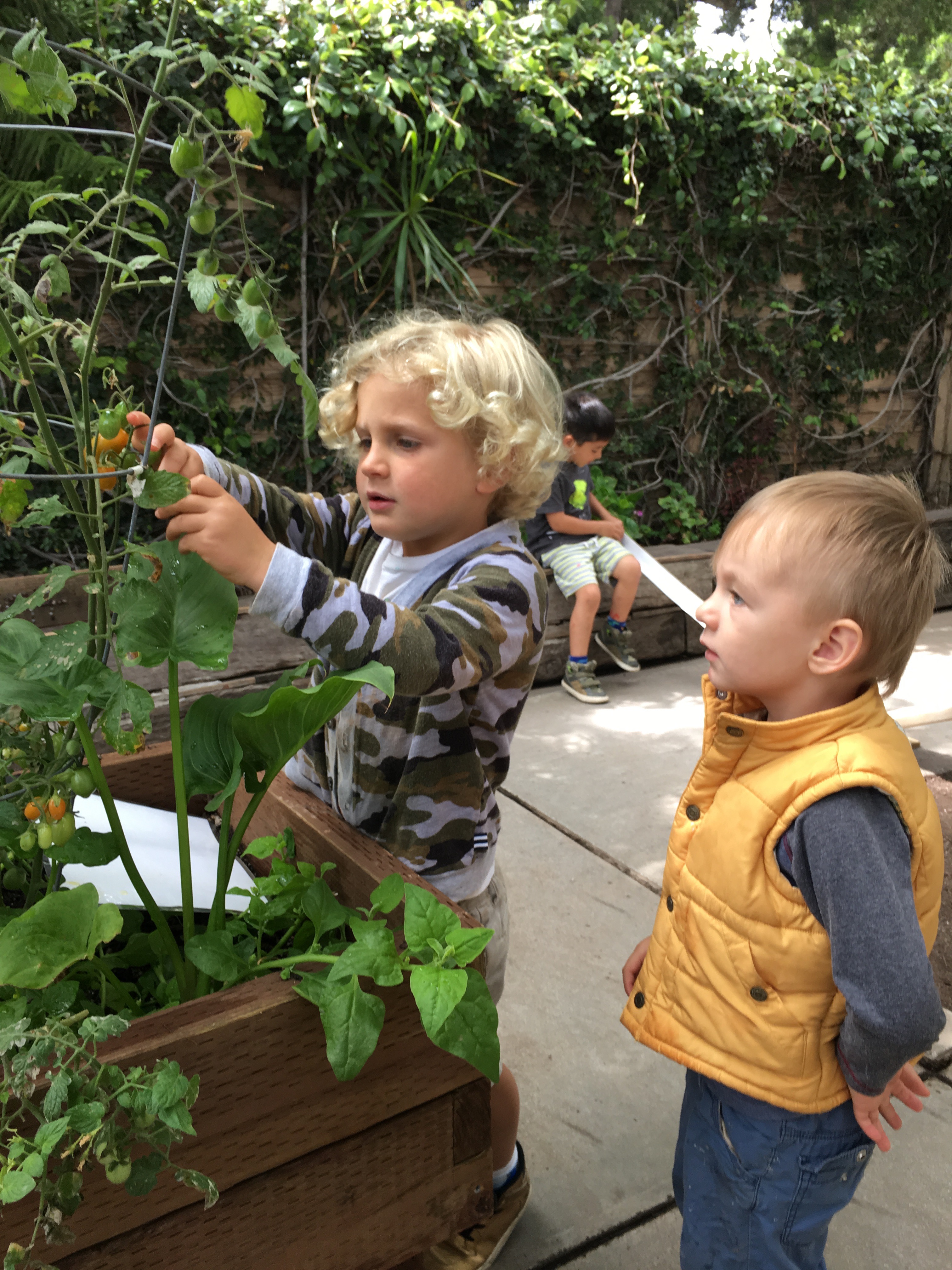 Grey: Do you want to try a tomato? We planted them.